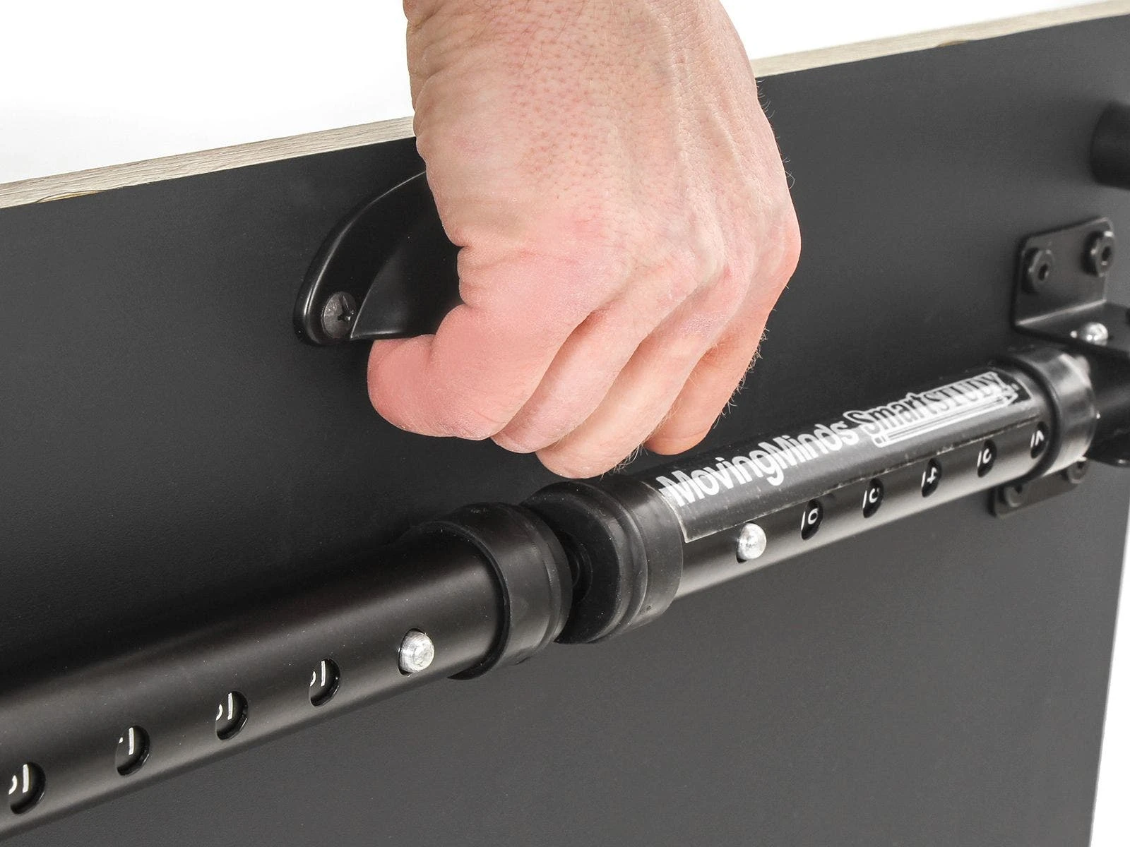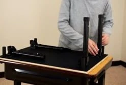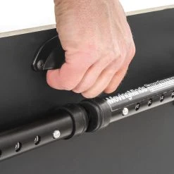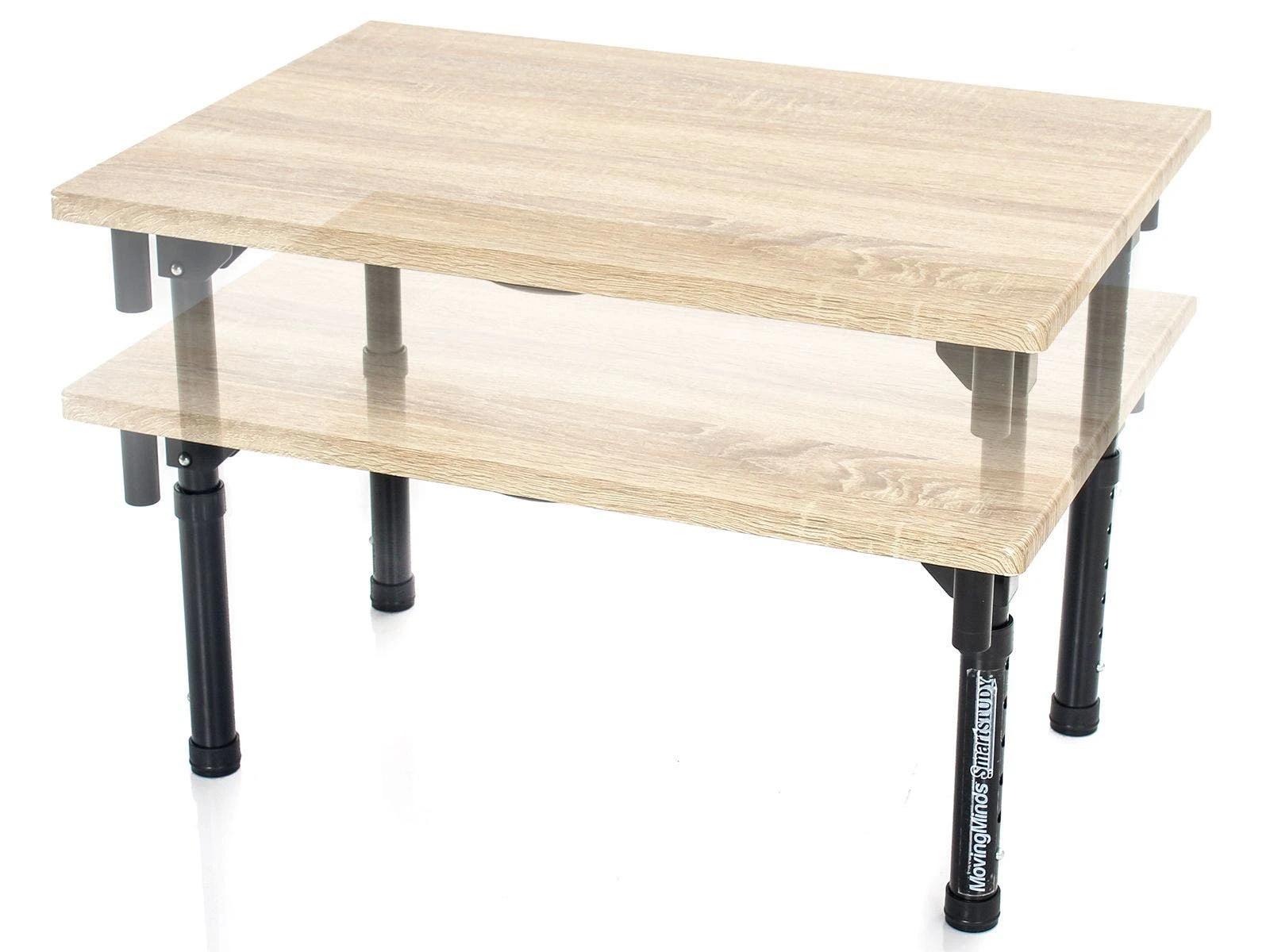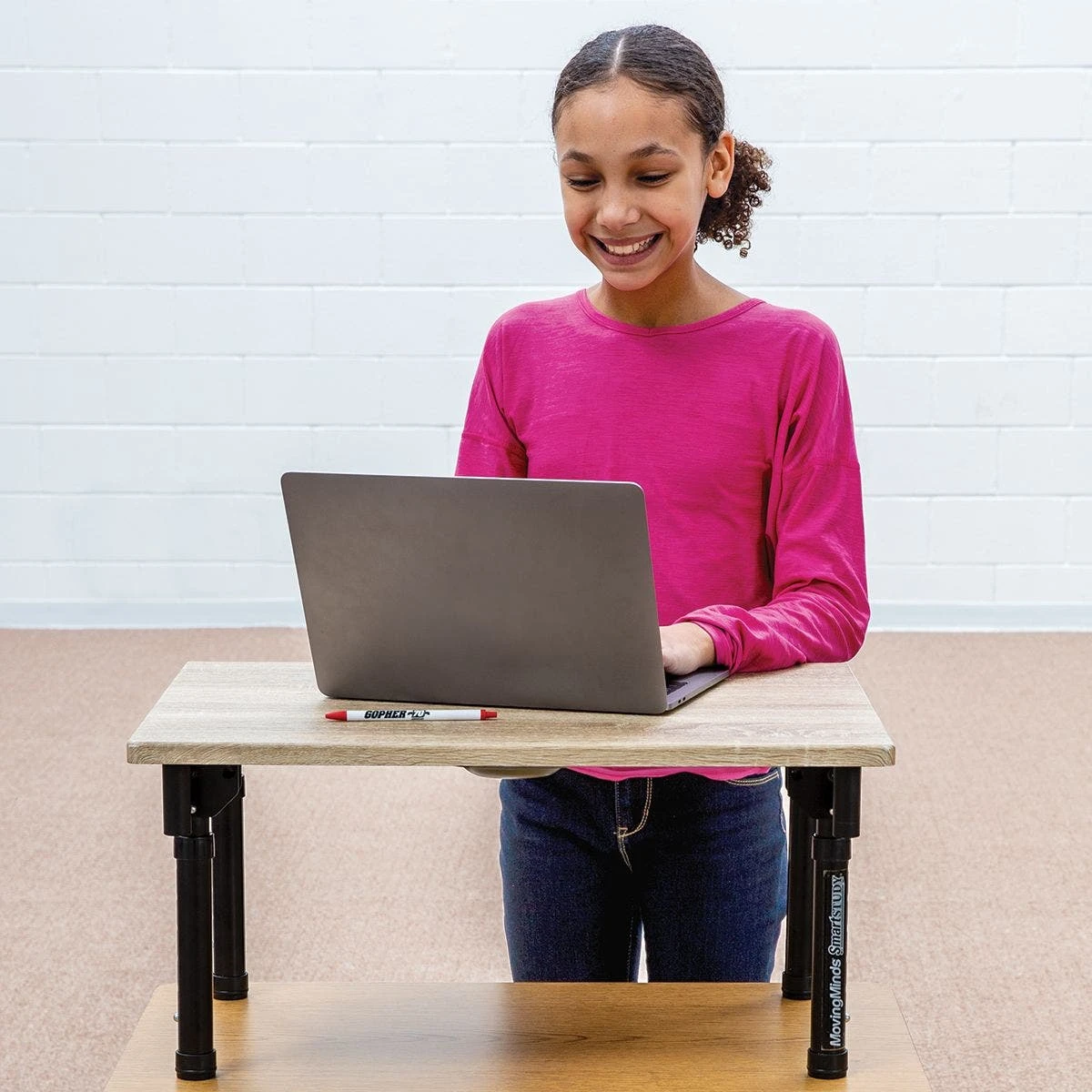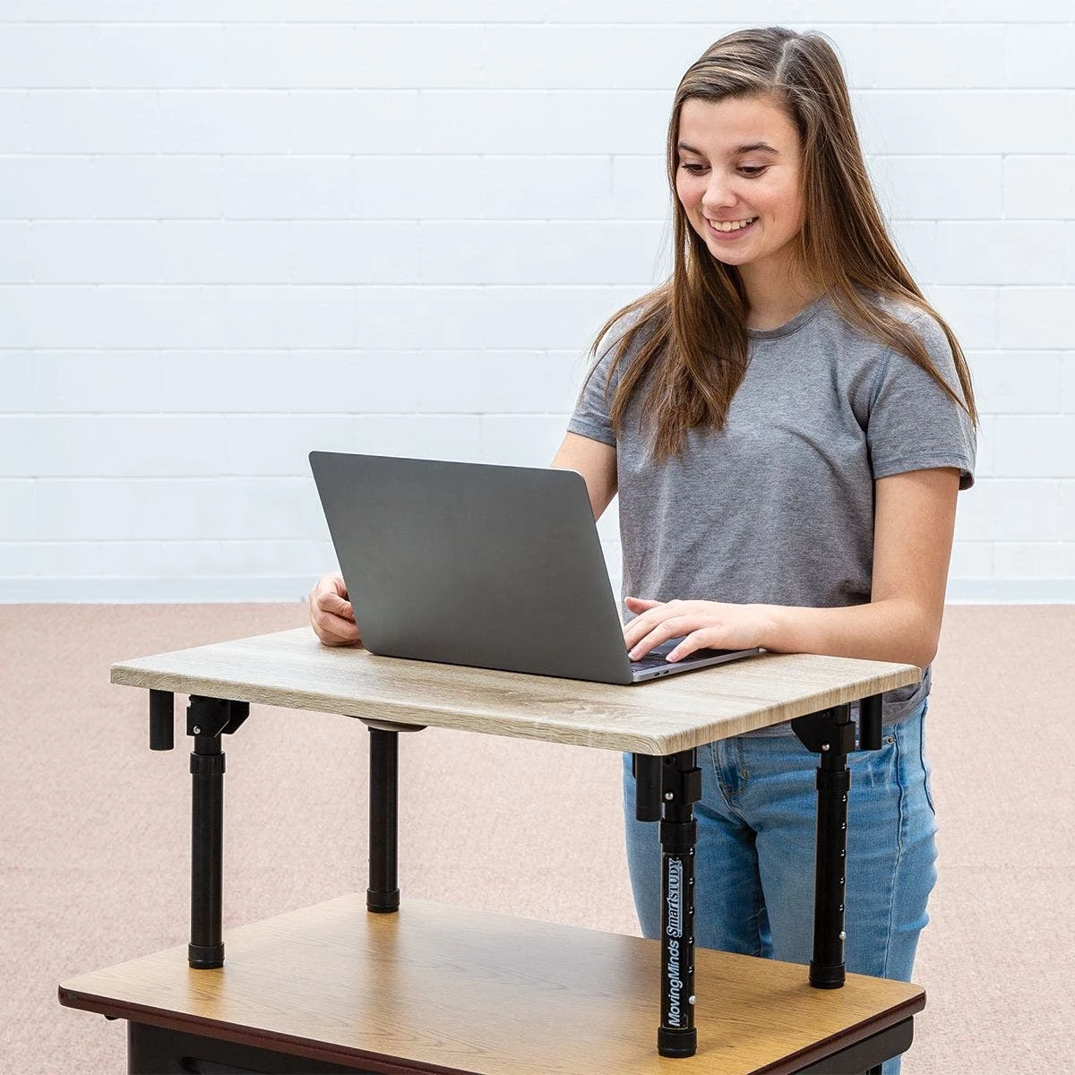 Customize your desk height in seconds with premium tabletop desks that adjust from 11.5” to 16.5”H in 1” increments. The tabletop desk fits most standard desk surfaces and provides a spacious 24”W x 18”D work area. Pushpin adjustments on all four legs are numbered for quick height identification, and the legs also feature rubber feet to protect your existing desks during use. When studies conclude, each leg folds in toward the center for compact storage, while an underside carry handle makes transportation a breeze.