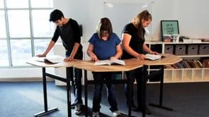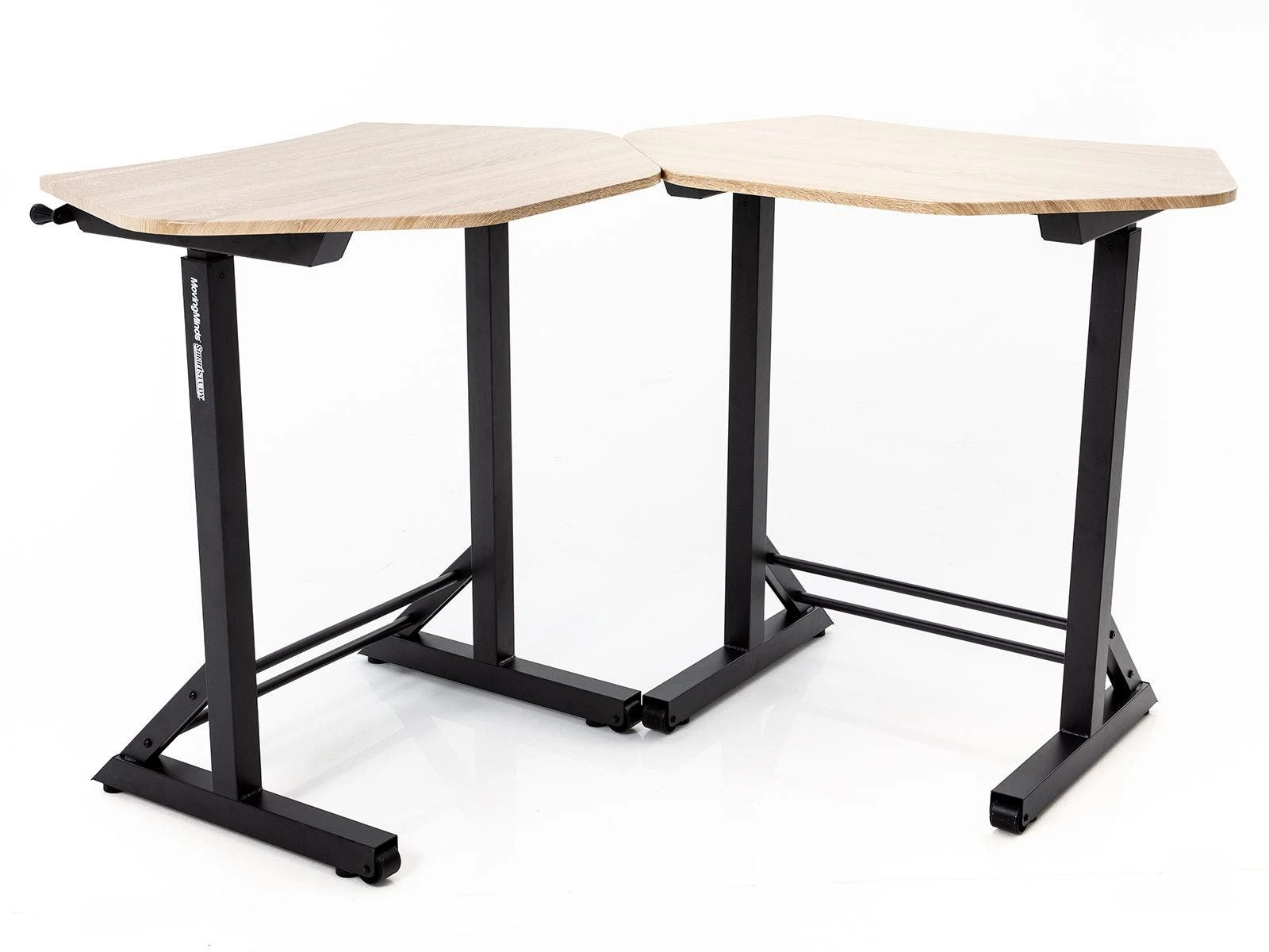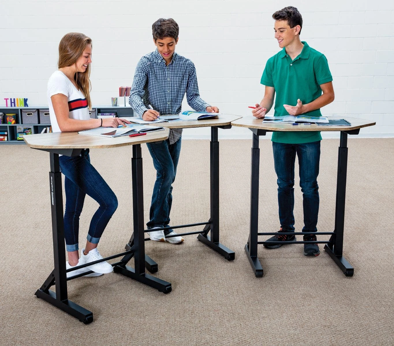 Our adjustable modular standing desks feature a built-in hand crank that adjusts desktop height along a 6″ range to meet almost any student at their level. Crank easily stows away under the desktop. As activities conclude, seamlessly transport adjustable desks on tip-and-roll wheels to create your next custom workspace or revert to your usual classroom setup in seconds.