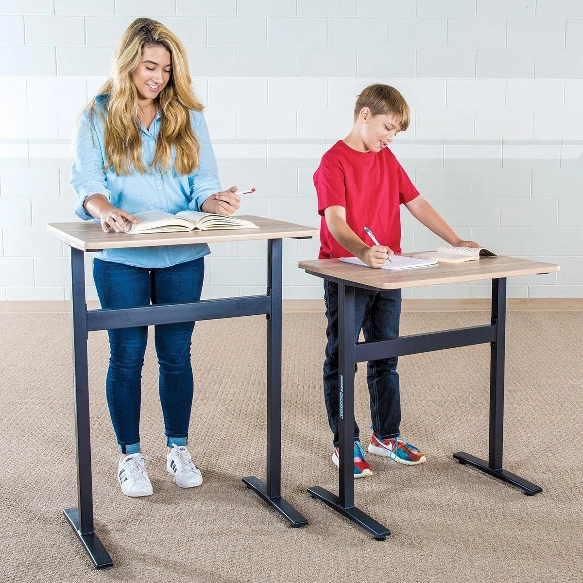 Easily increase blood flow for better concentration during class using these SmartStudy standing desks! They make it easy to outfit your class with durable standing desks that look sharp. The smooth matte-black frame is made of powder-coated steel for long-lasting institutional use, while the wood-colored melamine top looks great and resists wear in the classroom. Rubber leveling-feet ensure an even workspace so students aren’t distracted by a wobbling desk. These affordable desks are easy to fit in most budgets whether you need just one or enough for every student.