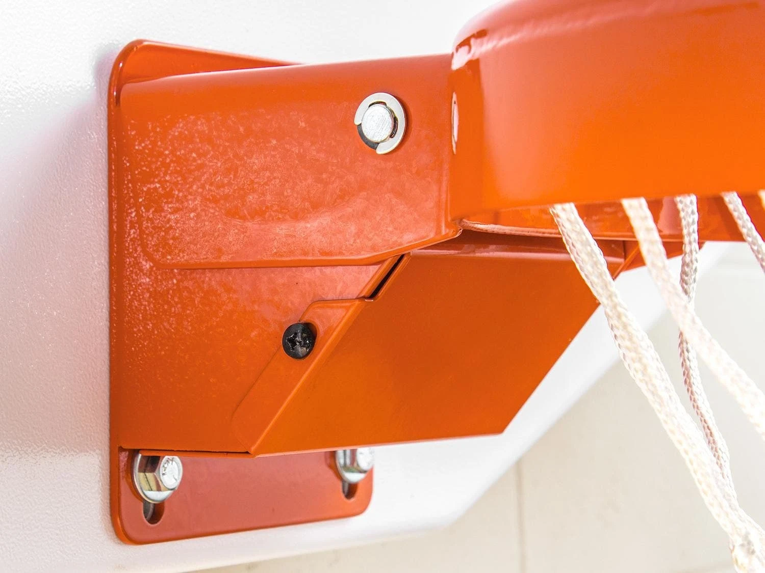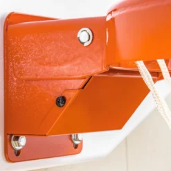 Goal absorbs impact from slam dunks or hanging on the goal, making it extra durable for practice or PE drills. It has a reflex mechanism that allows it to pivot downward when heavy weight is on the ring and will return to its original position with its spring loaded device. 5/8″ dia thick steel is powder-coated for extra durability.