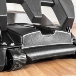 - Two-wheel base holds 19 gallons of water or four 50-lb bags of sand for stability