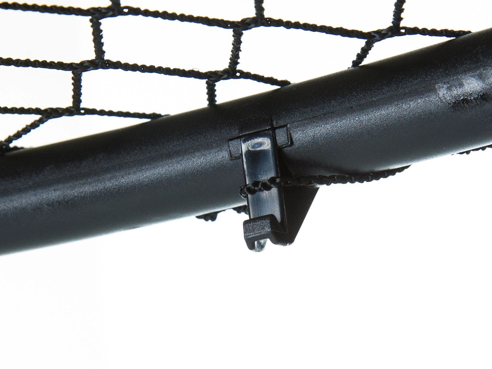 - Spikeball Original. The plastic frame disassembles quickly for easy storage. The net attaches to hooks around the frame, keeping it taut during gameplay. Set includes a net (36″ dia), 3 balls (3.5″ dia), and a carrying bag to store and transport it all easily.