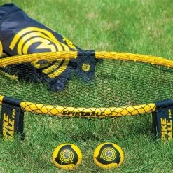 - Spikeball Rookie. Includes a larger ball and net to help beginners with skill-development and hand-eye coordination before moving to the Original version. Set includes 1 net (45″ dia), 1 Rookie ball (6.5″ dia), storage bag, and a rule book with 4 game variations.