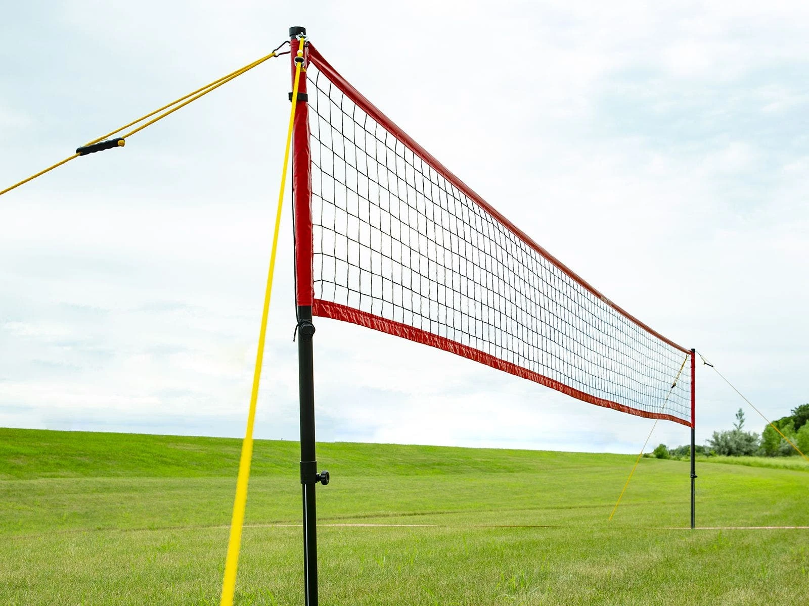 Set includes 2 telescoping poles, net, boundary marker, 6 boundary stakes, 4 anchor ropes, 2 carabiners, and an upgraded storage bag with a hard bottom for dependable transportation and storage. Entire system is 35 lb.