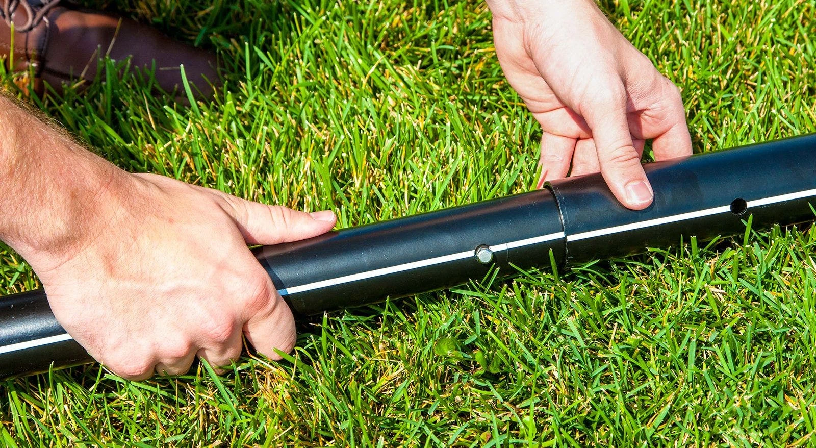 Set includes 2” dia aluminum poles that telescope to 7’4”, 7’8” and 8’H, making it great for just about any age group. Poles feature indicator lines to guide the push pin, making it easy to adjust the net height. 3 mm nylon net with 4″ black mesh features a 2.5″ vinyl headband and bottom band. Net is 32’L x 36”H.