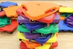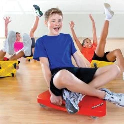A patented triangular shape and three-wheel design prevent tipping no matter what part of the scooter a student sits on! A larger surface area allows more than one student to sit on Stabilis at once, making it a top choice for cooperative and team activities.
