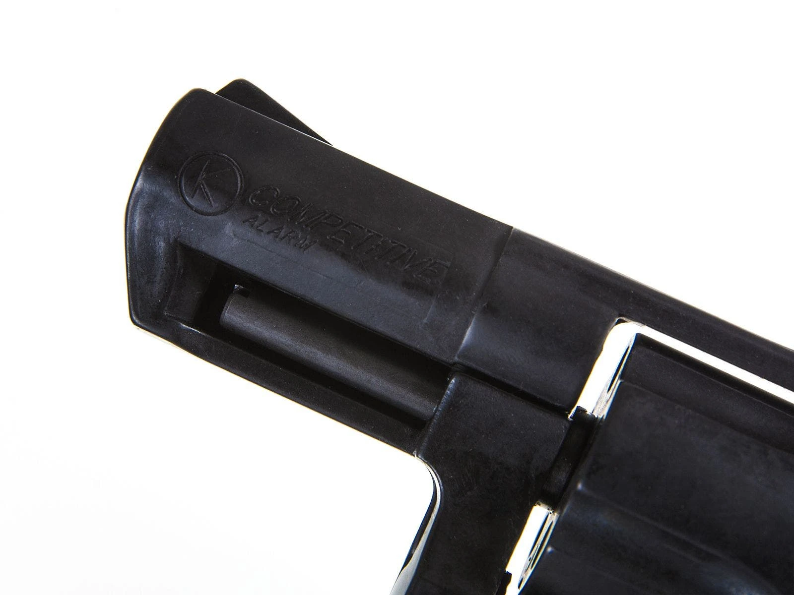 This pistol features a swing-out cylinder that is easy to load and holds five 209 primer blanks. It fires loudly, but with no smoke or flash. Safety is ensured by a blocked barrel and a transfer bar, which prevents the hammer from striking the firing pin unintentionally if dropped or bumped. The pistol comes with a carrying case for storage and a brush to make cleaning a breeze. Boxes of 100 primer blanks are available separately.