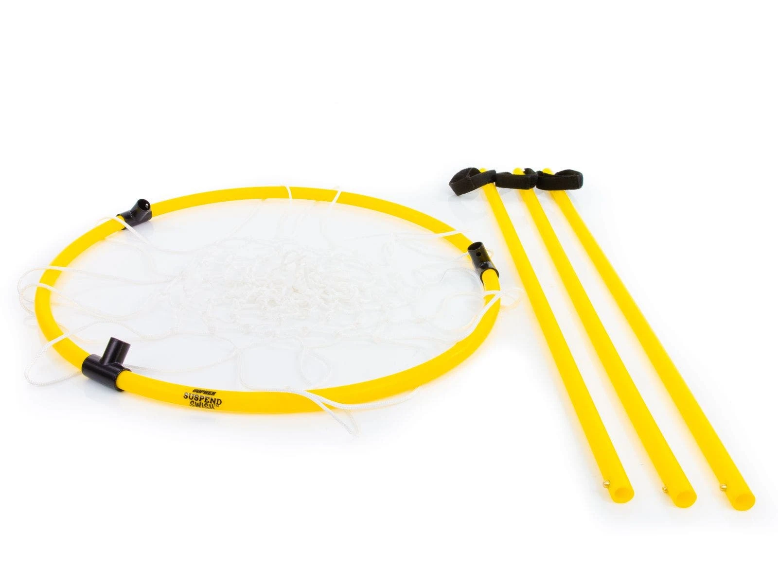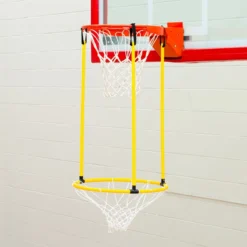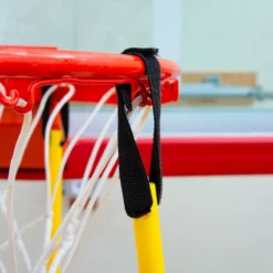 When you want to lower the goal for younger players, but don’t have an adjustable system, this hoop is your answer! It attaches to your existing basketball goal via hoop-and-loop fasteners for quick and easy setup. The 22″ dia goal lowers the hoop by 30″ for increased success for beginners. Constructed of lightweight, 19 mm polypropylene tubing for long-lasting use. Includes a white, 4 mm brained-nylon net.