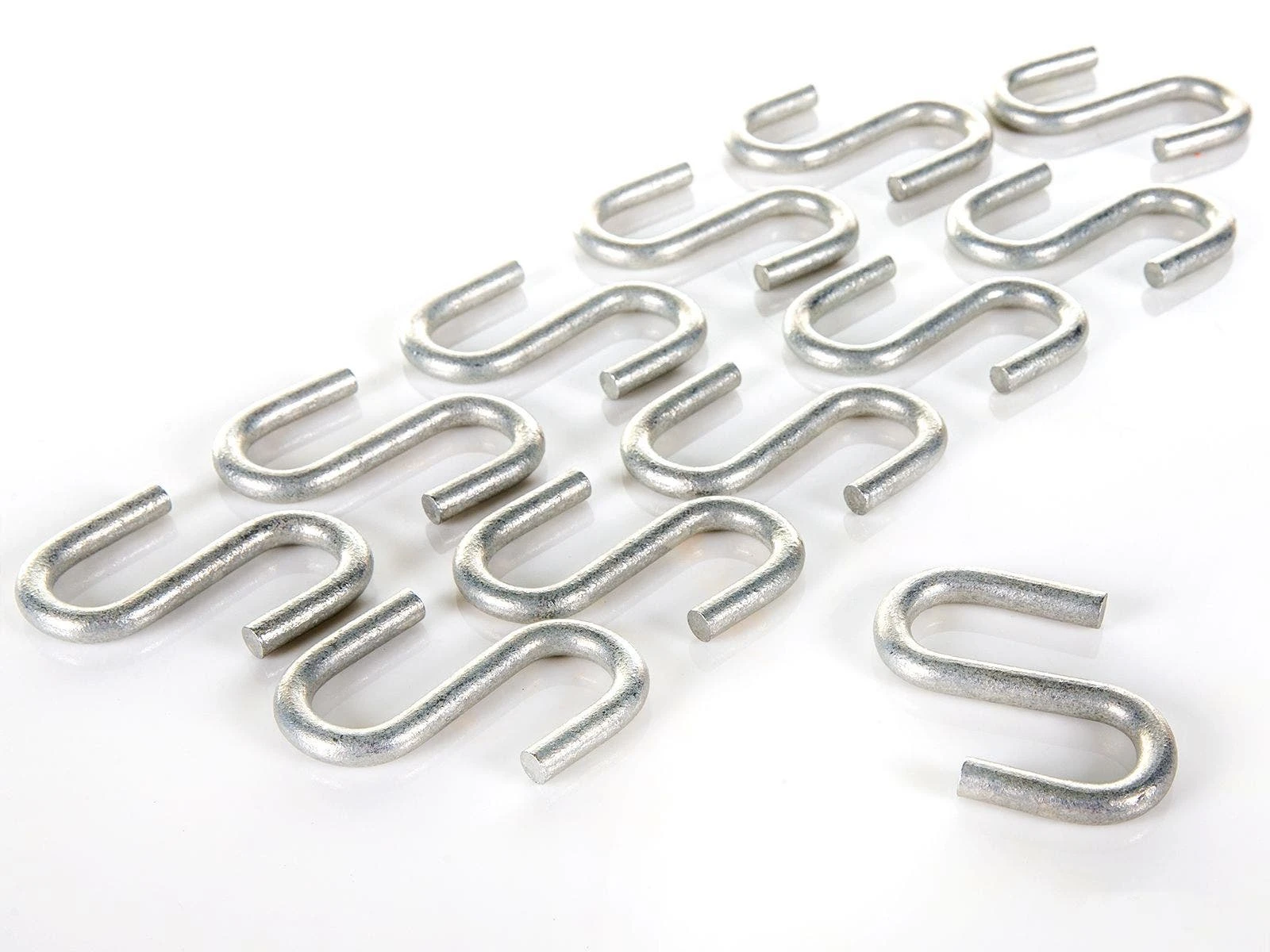 Safely hang swings using tough, long-lasting supplies. Iron swing hangers fit the crossbar on your swing set. Galvanized S-Hooks are essential for attaching the chain to the hanger. Hooks are zinc-plated to resist corrosion for increased durability.