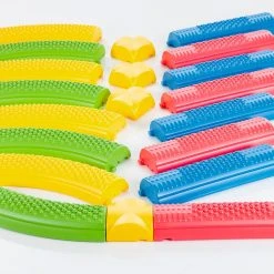 The interlocking sections of this balance beam set can be linked in an array of creative paths. A tactile surface places emphasis on coordination and response to sensory stimulation. Durable plastic construction and rubber feet minimize slipping for added safety.