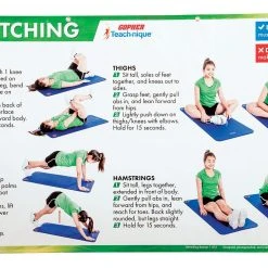 Increase range of motion and coordination while decreasing the risk of injury with eight upper- and lower-body stretches. Large 5’W x 3’H stretching banners feature detailed images and step-by-step instruction to reinforce verbal direction. Heavy-duty vinyl banners feature hanging grommets in all 4 corners for easy setup.
