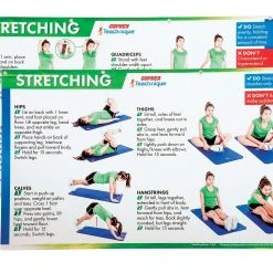 Increase range of motion and coordination while decreasing the risk of injury with eight upper- and lower-body stretches. Large 5’W x 3’H stretching banners feature detailed images and step-by-step instruction to reinforce verbal direction. Heavy-duty vinyl banners feature hanging grommets in all 4 corners for easy setup.