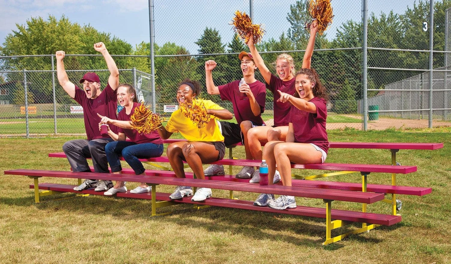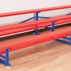Bleachers are designed to stand up to institutional use, as well as inclement weather conditions. The structure is powder coated for a durable finish, ensuring the colors will not chip or flake off. Choose from 2 options to fit school or team needs.