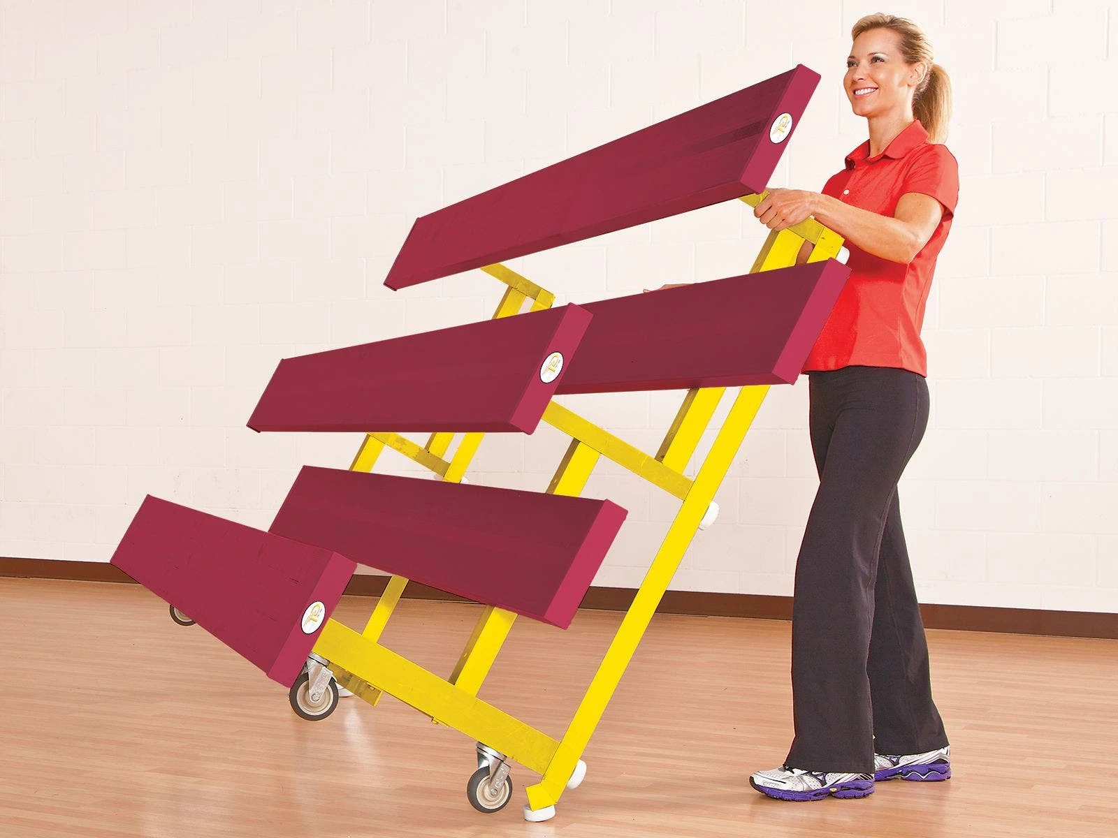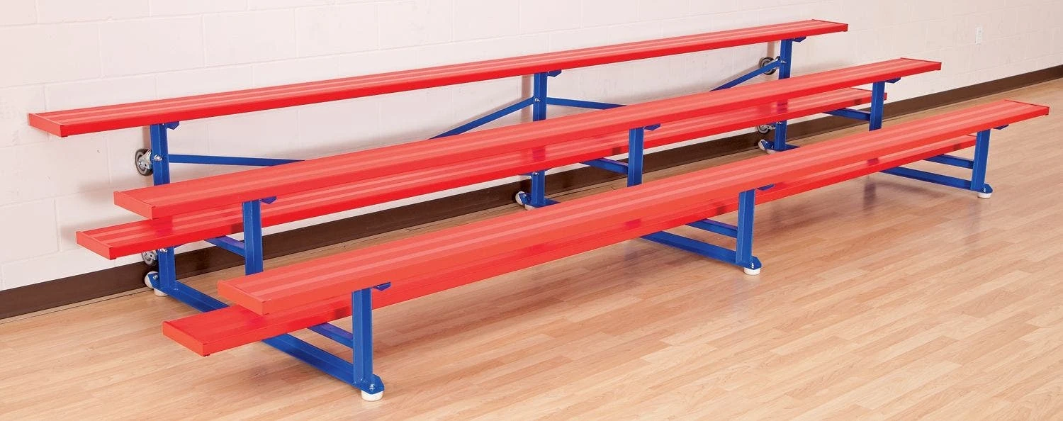 - Tip-N-Roll Bleachers. Constructed with durable aluminum for lightweight stability. Tip and roll design allows for easy relocation of bleachers to free up space.