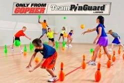 Each Team PinGuard Set includes 12 soft foam 6.3″ dia dodgeballs (6 ea Screamin’ Orange and Screamin’ Green), 20 coated-foam pins (10 ea Screamin’ Orange and 10 Screamin’ Green), a VersaBag mesh storage bag, and activity instructions.