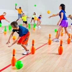 Teach teamwork, agility, targeting, and dodging skills as teams of 15 or more compete to knock down their opponents’ pins while protecting their own. All equipment comes in bold and exciting Screamin’ colors to boost class participation and organization!