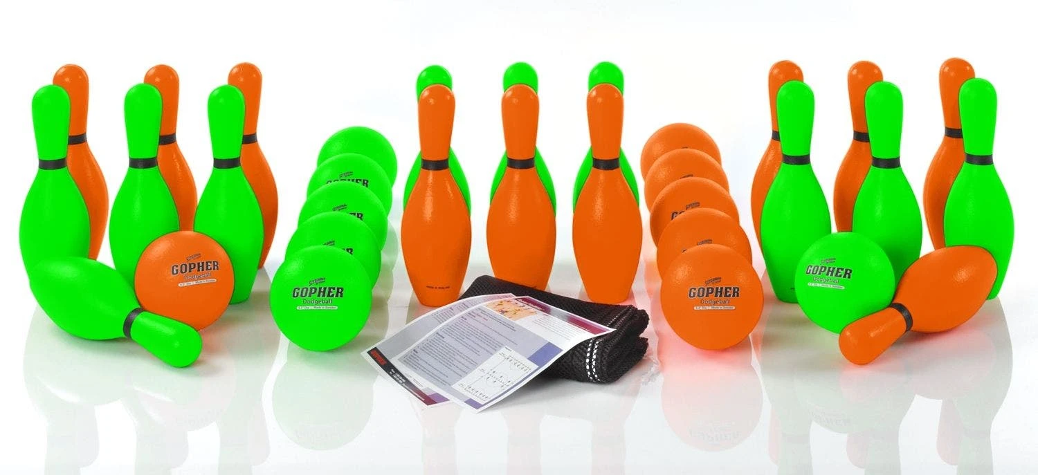 - Orange/Green Pin Battle: Students roll their balls in attempt to knock down the other teams’ pins, while keeping theirs upright.