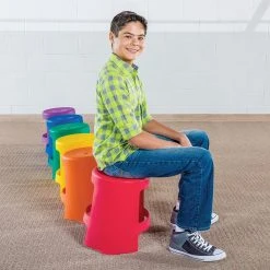 One-piece molded construction offers long-lasting institutional use and supreme durability, while a carrying handle makes each seat easy to transport. When students finish rocking out their wiggles, nest seats together for efficient storage. Each seat has a 500 lb weight capacity and is available in 2 sizes. Patented.