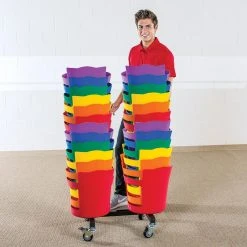 Durable design supports up to 500 lb, so you can rely on these seats to last year after year. Lightweight seats are easy to move thanks to integrated handles. This design makes them an excellent option for breakout or group study sessions. When class is over, easily stack chairs on the included cart for compact storage. All 24 seats fit on the cart’s two powder-coated steel posts. The cart rolls smoothly across most surfaces on four 3” dia casters, 2 locking.