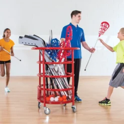 Large size accommodates up to 50 hockey or lacrosse sticks, or 20 official basketballs—enough to outfit your entire class for fun! 40″H x 32″ dia; 50 lb.
