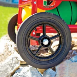 - Features two 12” all-terrain wheels and two 4” swivel casters