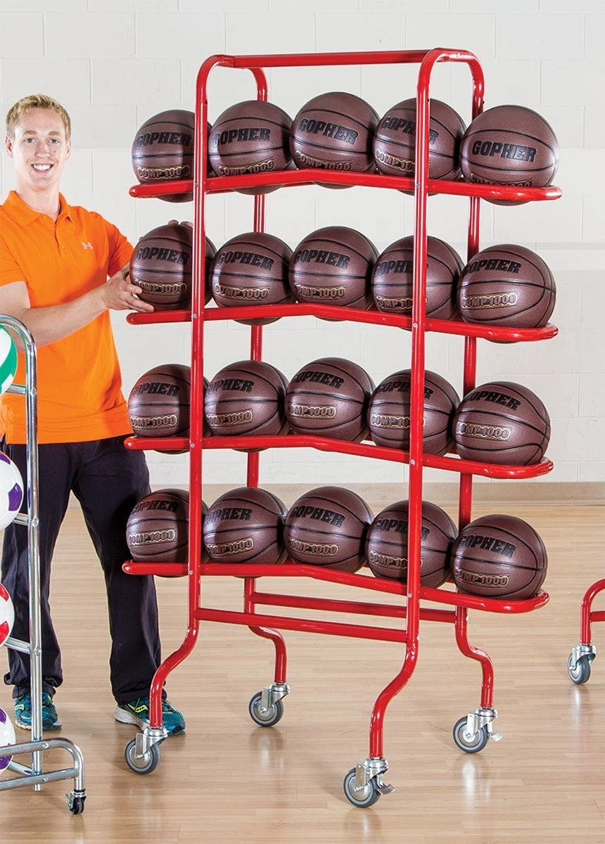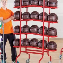 - Stores 16 official size basketballs