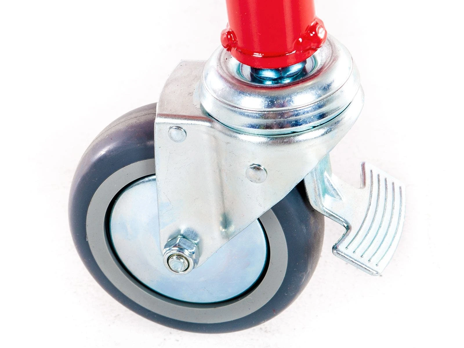 Strong, 1¼” dia steel tubing is powder-coated for extra durability. Four 4″ dia swivel casters—2 of them locking—allow for easy transportation from storage to the gym. A wide base adds extra stability.