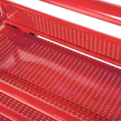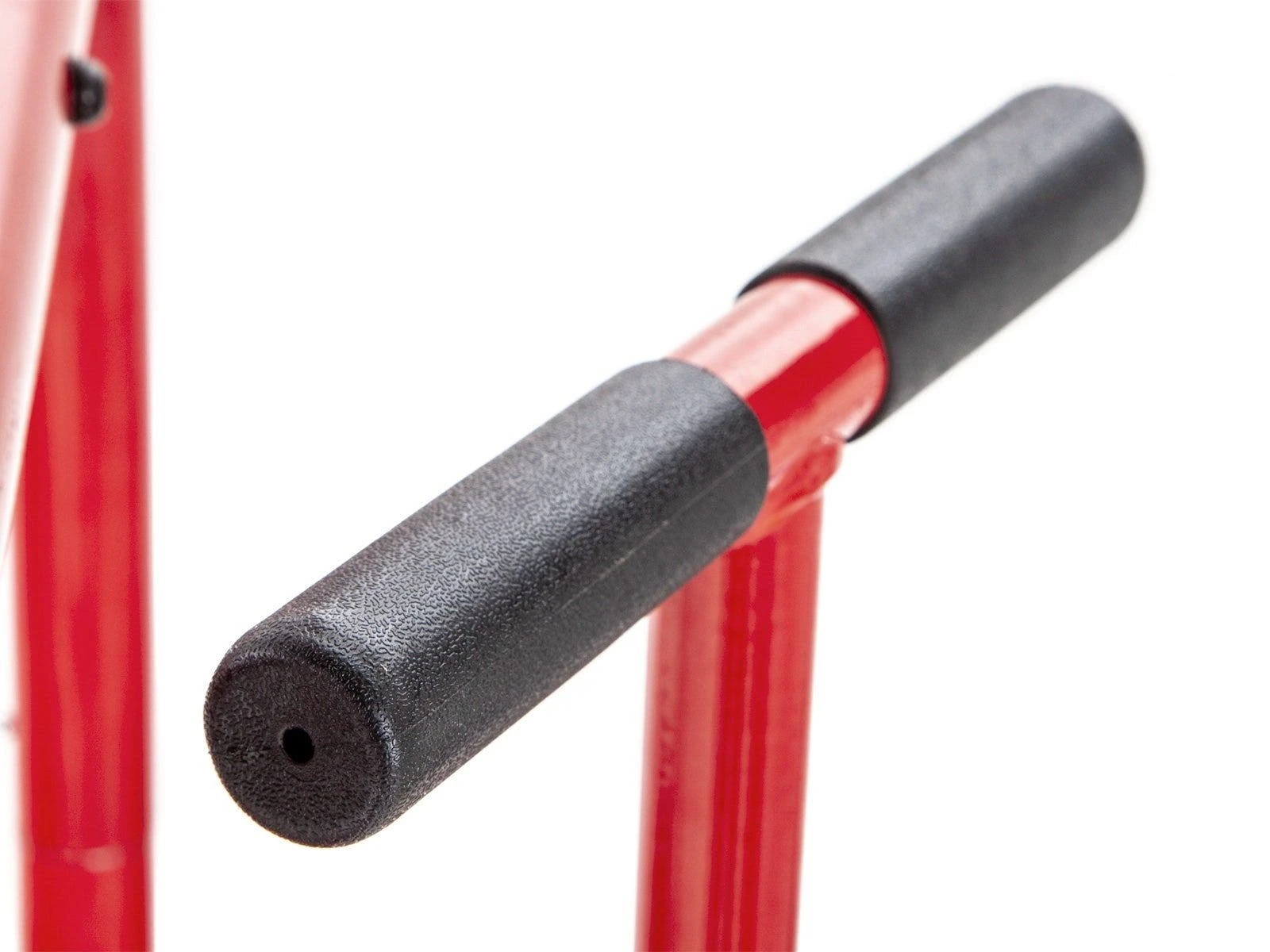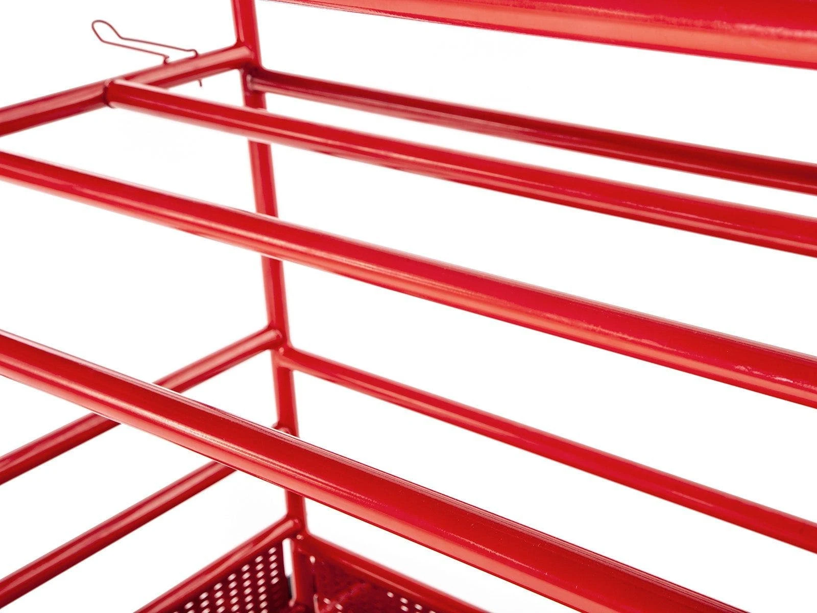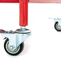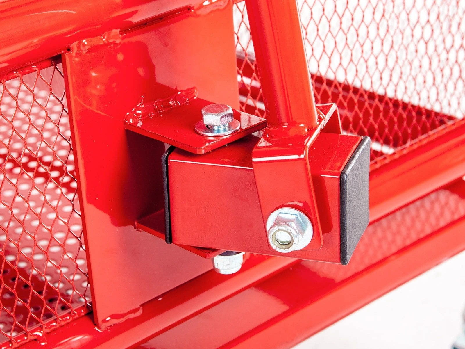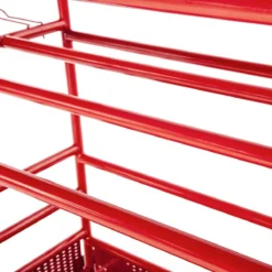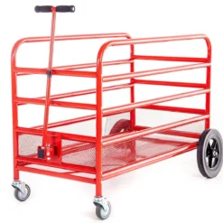 A steel mesh bottom creates basket-style storage space that’s perfect for smaller items. Transparency makes it simple to quickly spot the items you’re looking for. When pulling the wagon, a steel handle swivels for easy direction changes through tight spaces. A padded grip offers plush comfort while in use. When not in use, it quickly locks into place for safety while students load or unload equipment.