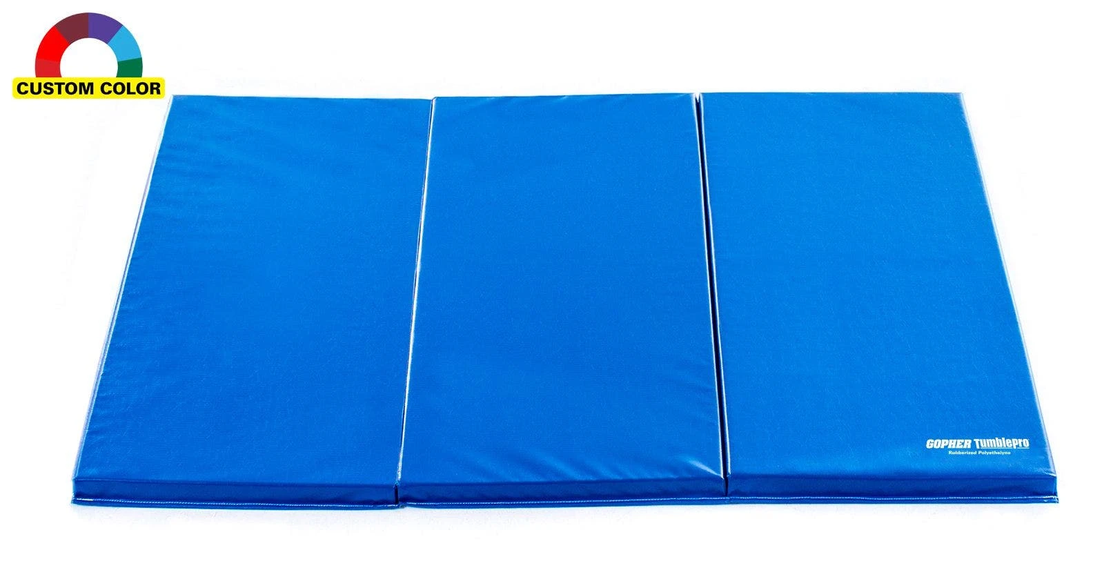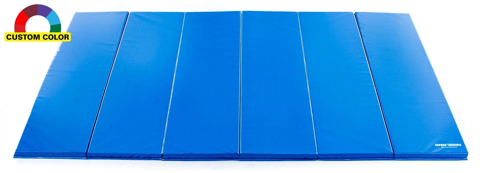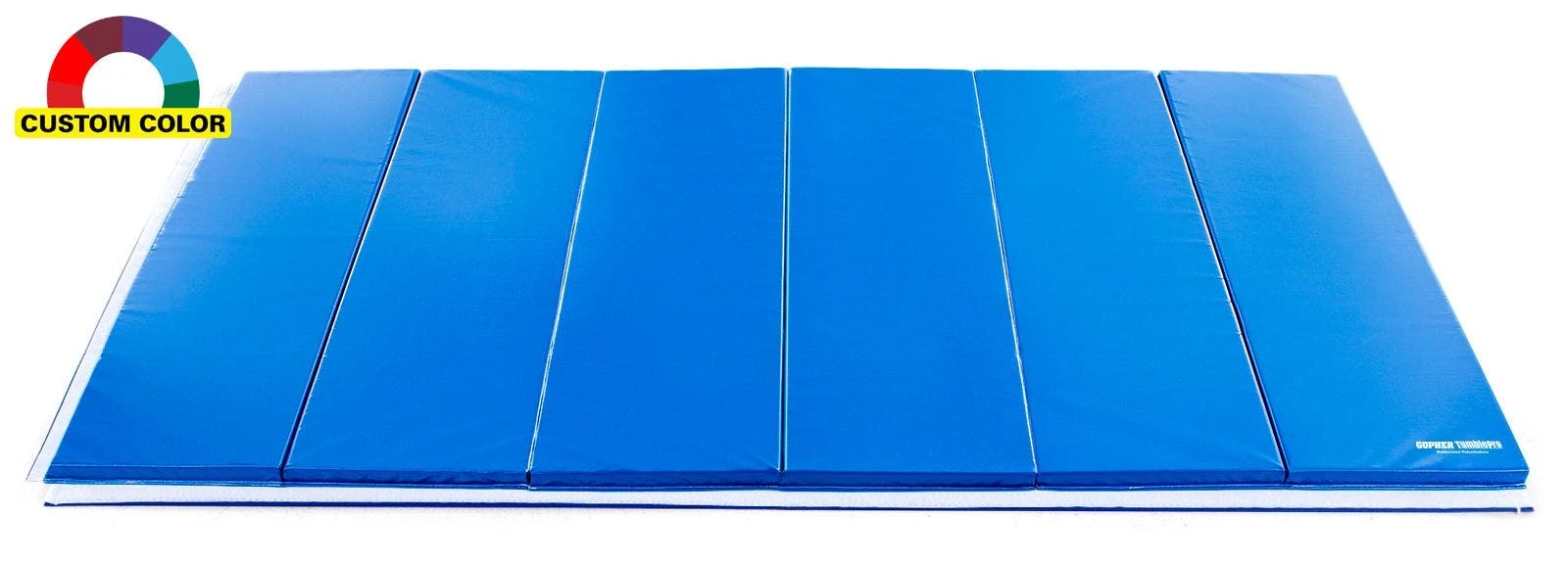 These mats are wrapped in a 14 oz antimicrobial vinyl cover that is flame-retardant, mildew-resistant, and easily washable between uses. Double reinforced inside seams are nylon-stitched for durability and maximum safety. Despite top-notch durability, mats fold 2′ sections for easy transportation and compact storage. Mats without hook-and-loop fasteners can be used individually, or mats with hook-and-loop fasteners on two ends or four sides allow them to be linked together in a long run or combined to cover large areas.