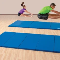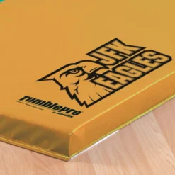 Heavy-duty tumbling mats are perfect for your gymnastics studio or team competition. Layered foam mats combine a soft 1″ thick top layer of urethane foam to improve confidence; the extra-firm 1-3/8″ thick bottom layer of closed-cell cross-link polyethylene foam prevents bottoming out. Show your pride by customizing these mats with your school or organization’s logo!