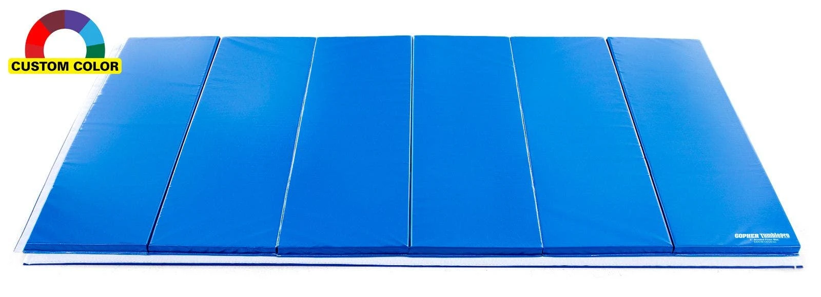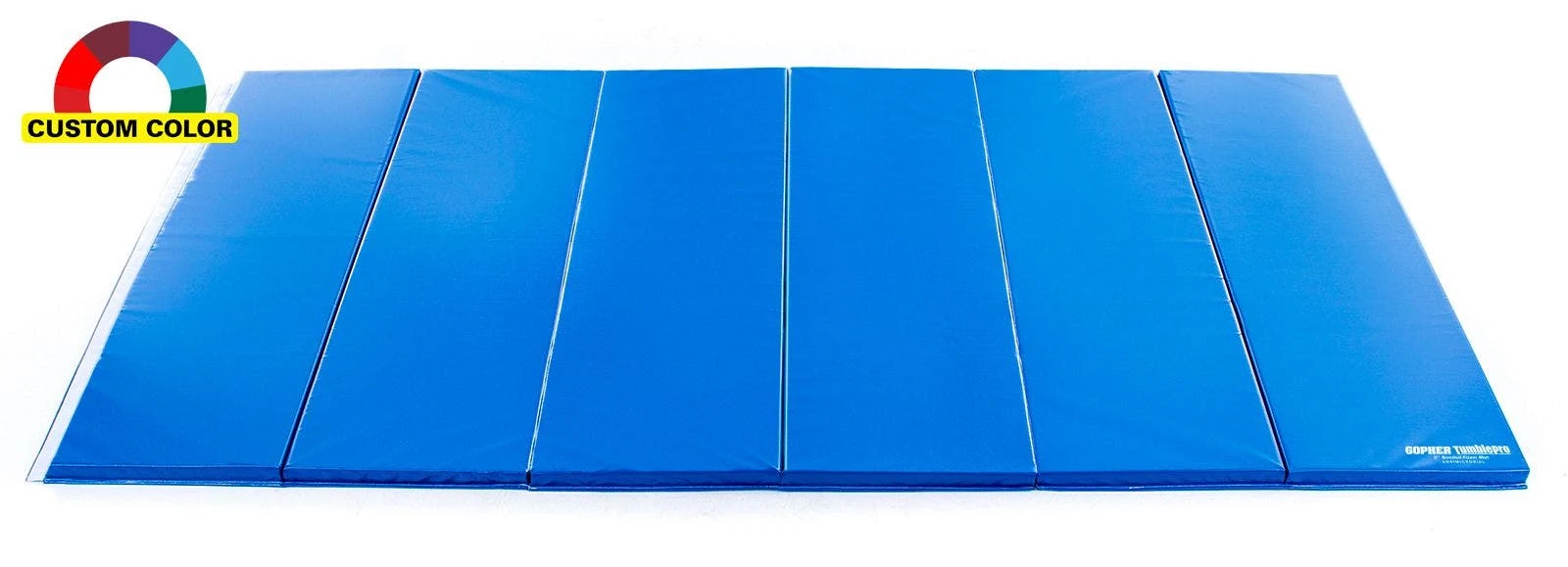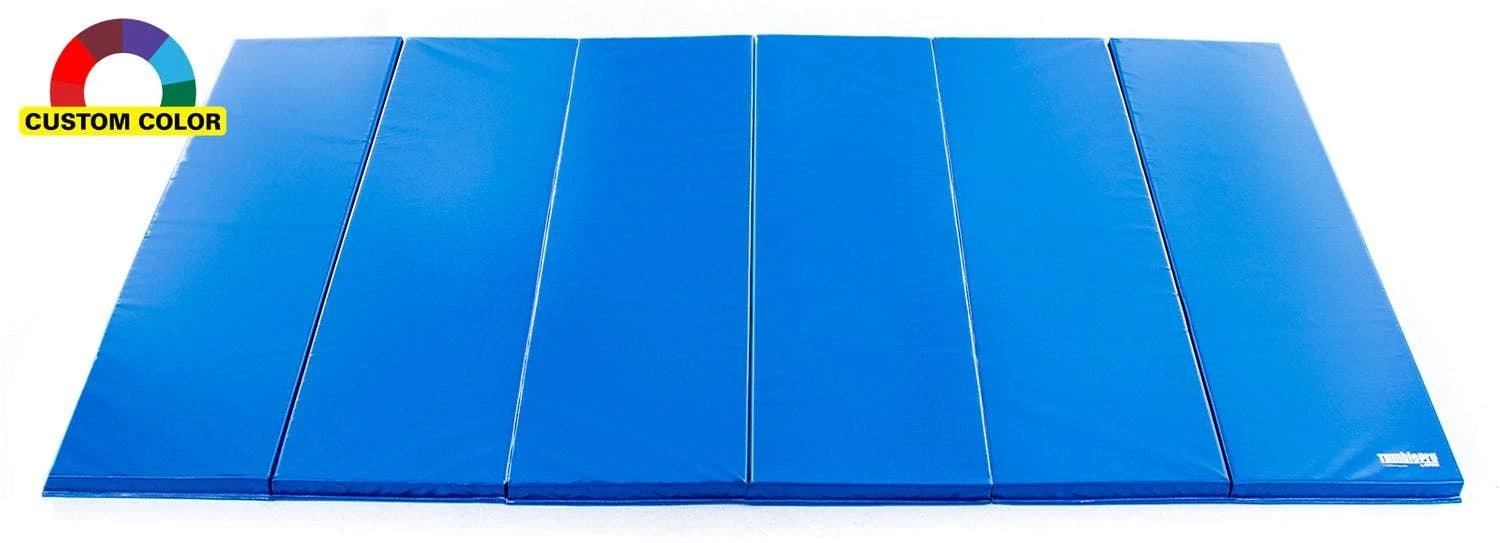 Perfect for medium-impact gymnastics, tumbling and cheer activities, these 6 lb bonded-foam mats offer more stability and firmness than standard urethane-foam mats, without sacrificing a soft feel or bottoming out. Customize in your choice of 17 colors (one solid color or alternating panels) to build spirit or carry through a color theme.