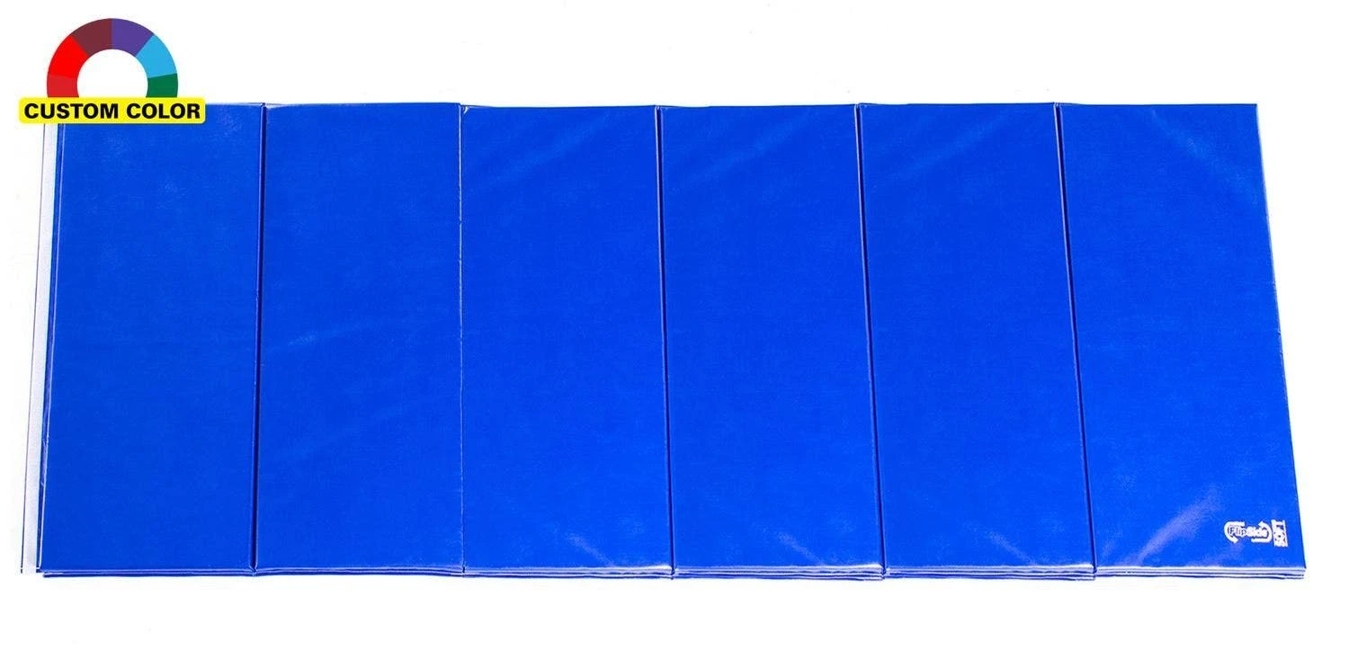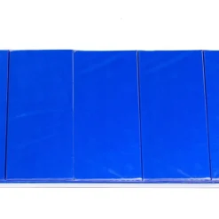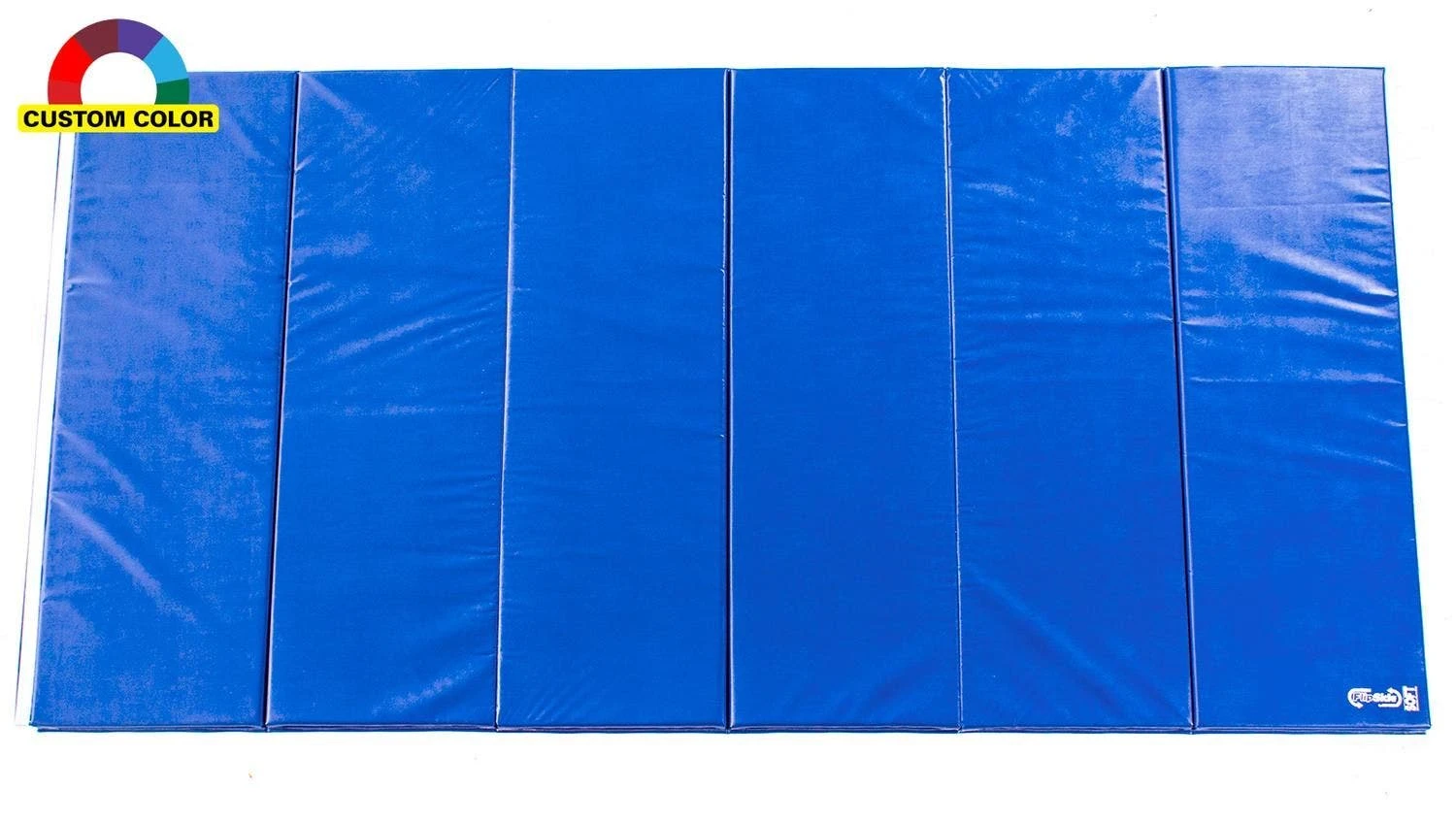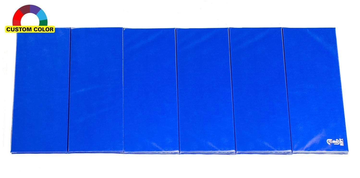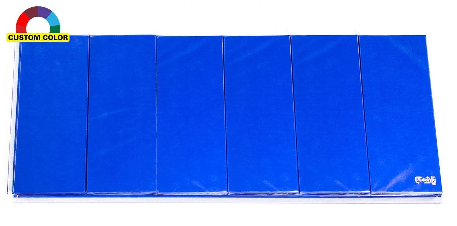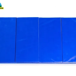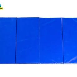 A smooth, nylon-reinforced 16 oz antimicrobial vinyl cover is flame-retardant, washable, and mildew-resistant, with double-reinforced nylon-stitched inside seams for durability and maximum safety. Folding mats collapse into 1′ or 2′ sections for easy storage.