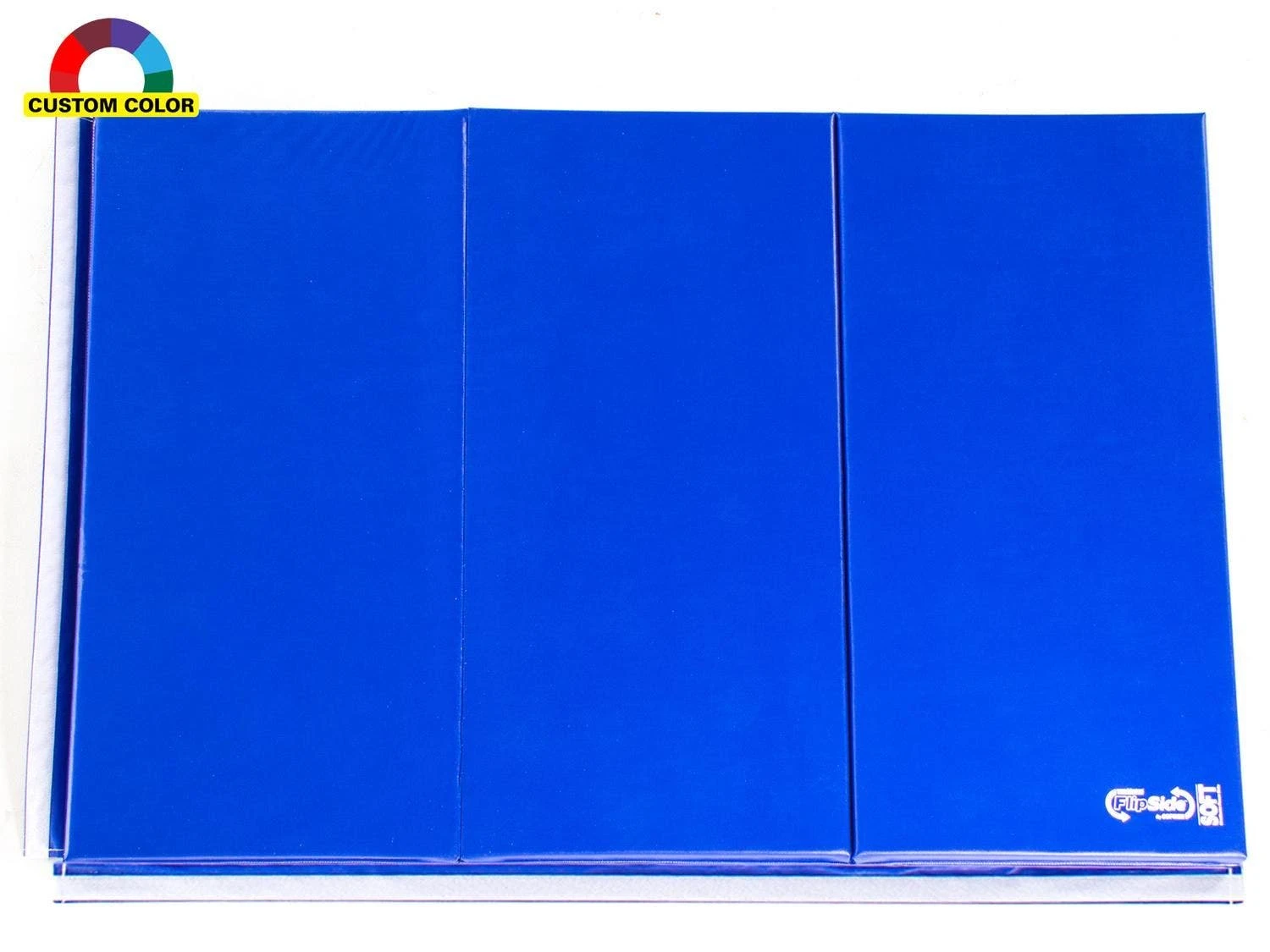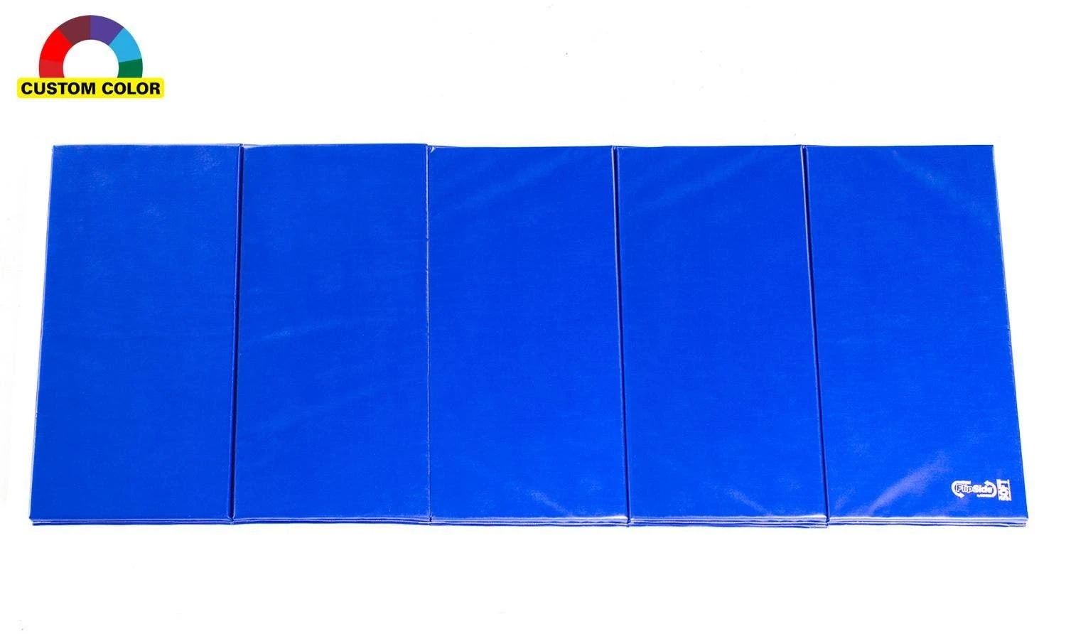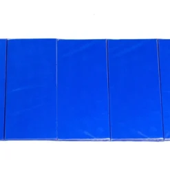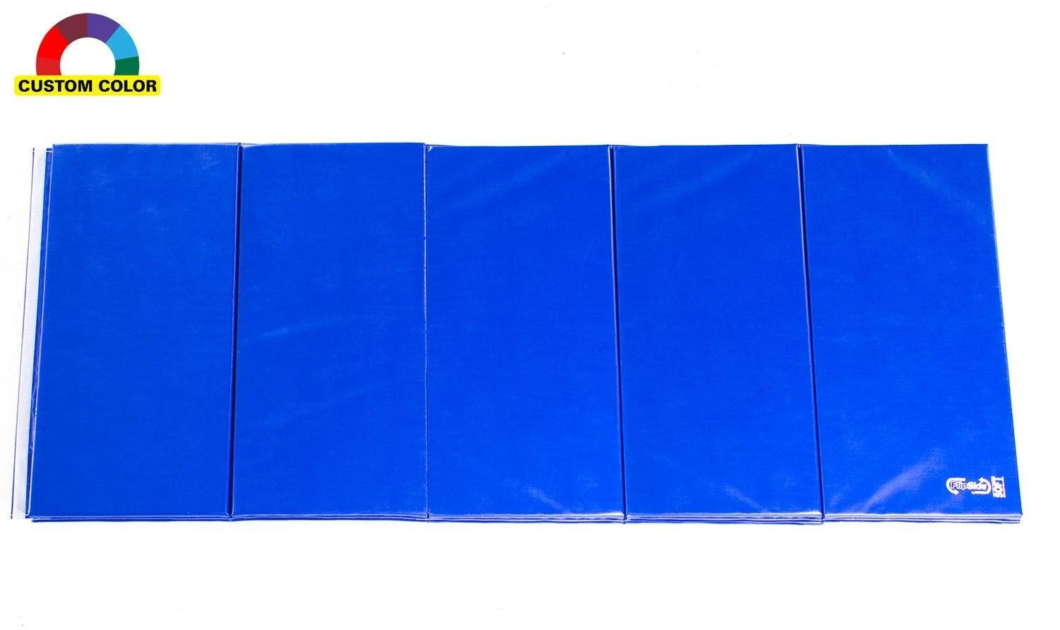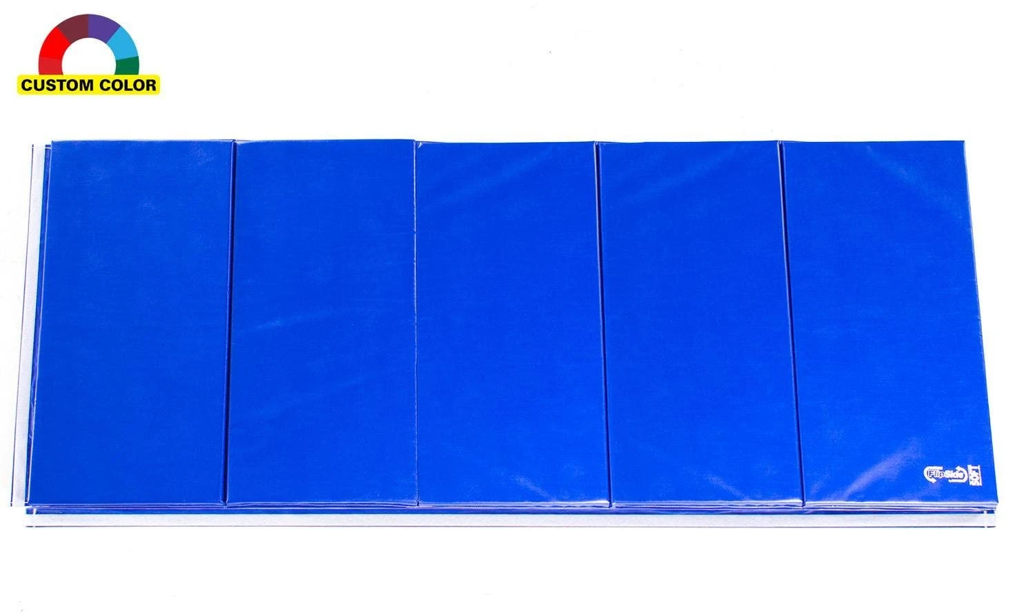 A smooth, nylon-reinforced 16 oz antimicrobial vinyl cover is flame-retardant, washable, and mildew-resistant, with double-reinforced nylon-stitched inside seams for durability and maximum safety. Folding mats collapse into 1′ or 2′ sections for easy storage.