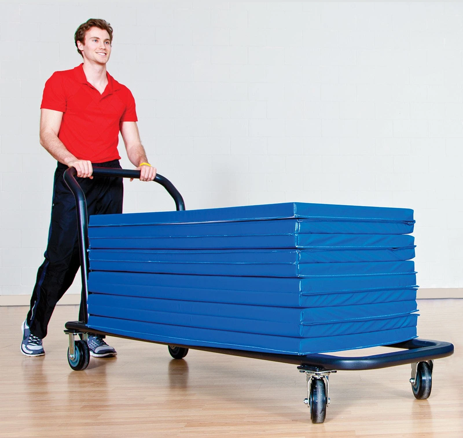 This heavy-duty mat cart features a large, oval-tube steel design for superior strength. Itβs great for transporting your folding or non-folding mats with 6β all-terrain wheels. A powder-coated finish looks professional and allows for long-lasting reliability.