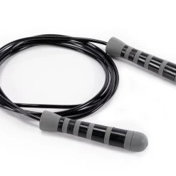 Enjoy the fast-paced action of a speed jump rope, then pivot to a weighted rope for a little extra burn. Simply unscrew the end of each handle to insert or remove a 1/2 lb weight for added intensity during workouts. Handles are 6-1/4″L x 1-1/4″ dia and feature a metal ball bearing system for smooth spinning. Tapered handle design with TPR creates a secure and safe grip during use. Handles are color-coded with length printed on the end cap for quick identification. Fitness jump ropes feature a black, 1/4” dia solid PVC rope that withstands consistent use.