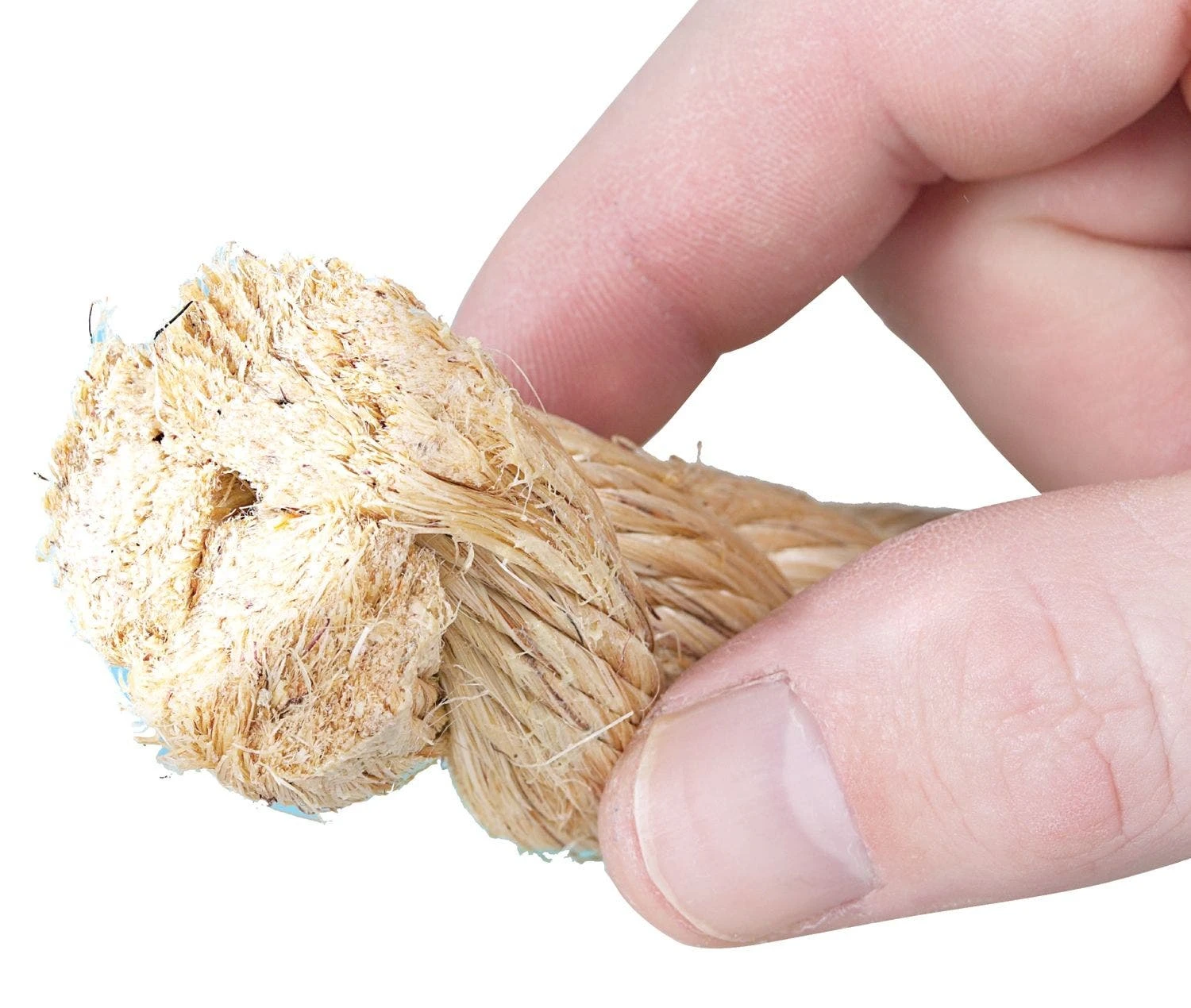 Manila construction is the strongest option for tug-of-war ropes. Woven, 1” dia design offers great grip and a supportive texture. These ropes absorb sweat and light moisture to prevent slickness during activities. Each connecting rope is spliced onto a steel center ring via a metal thimble. All ropes are capped with a hand-spliced loop for additional grip from anchor players.