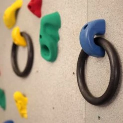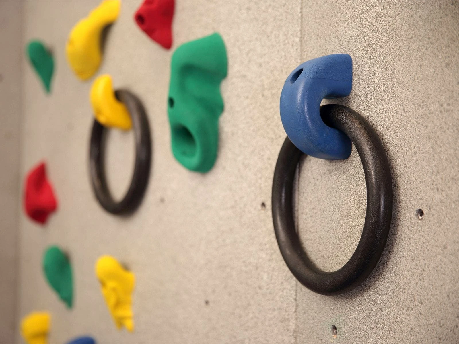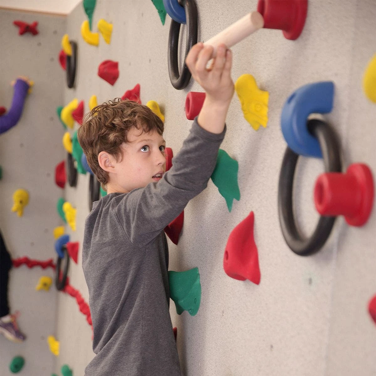 Take your indoor climbing wall to the next level as students use these unique holds to make progress in new and exciting ways! Designed for most existing traverse walls, three distinct styles of hand and foot holds offer new levels of difficulty to build upper-body strength, balance, and coordination. Loop Holds permanently secure a ring, while Hook Holds allow students to link a loose ring to various points on the wall. A peg-and-hole hold provides yet another way to climb! Mix and match all three, use them in their own sections, or intersperse with foot holds to vary the difficulty and provide a new climbing experience every time. An included activity guide provides 3-5 activities for each style of hold so climbers can leap right into the action! Designed for Upper Elementary through High School use.
