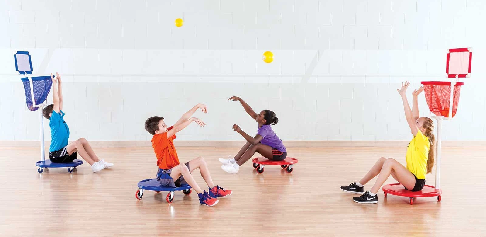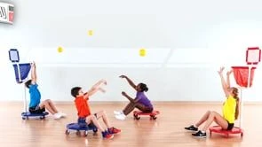 Students sit on our UltimateScooter Boards and work closely with teammates to sink 3.5″ dia foam balls into the other team’s scooter hoop! Students will love the fun twist on this popular game and the challenge!