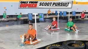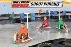 Each impact-resistant PVC attachment quickly assembles via push-pin connections. Simply insert each attachment into the UltimateScooter Board’s custom fitting to start the pursuit in seconds! Each scooter attachment is 46″H x 34″W x 22″D.