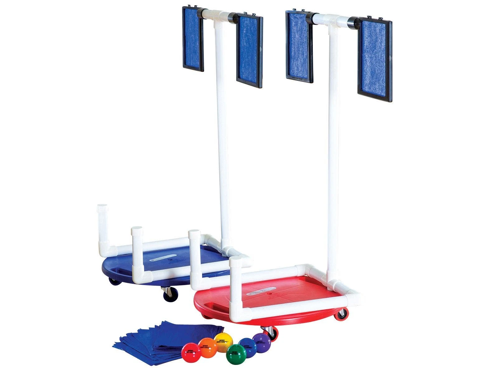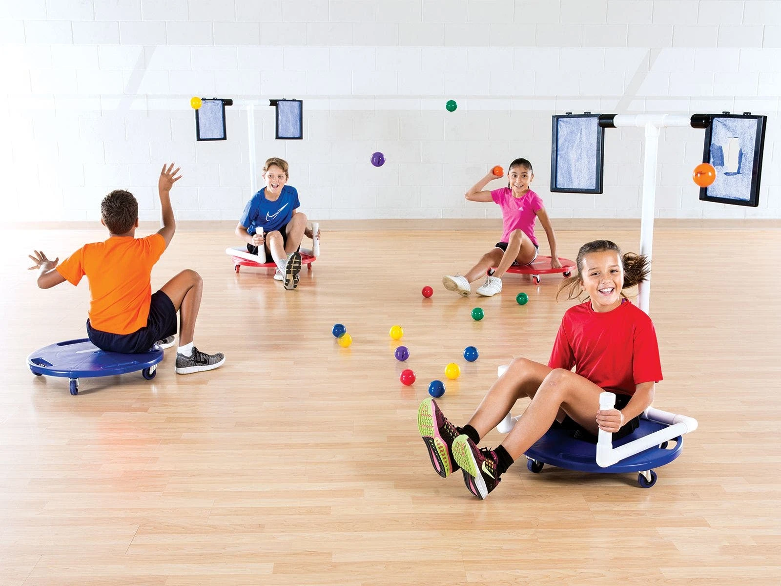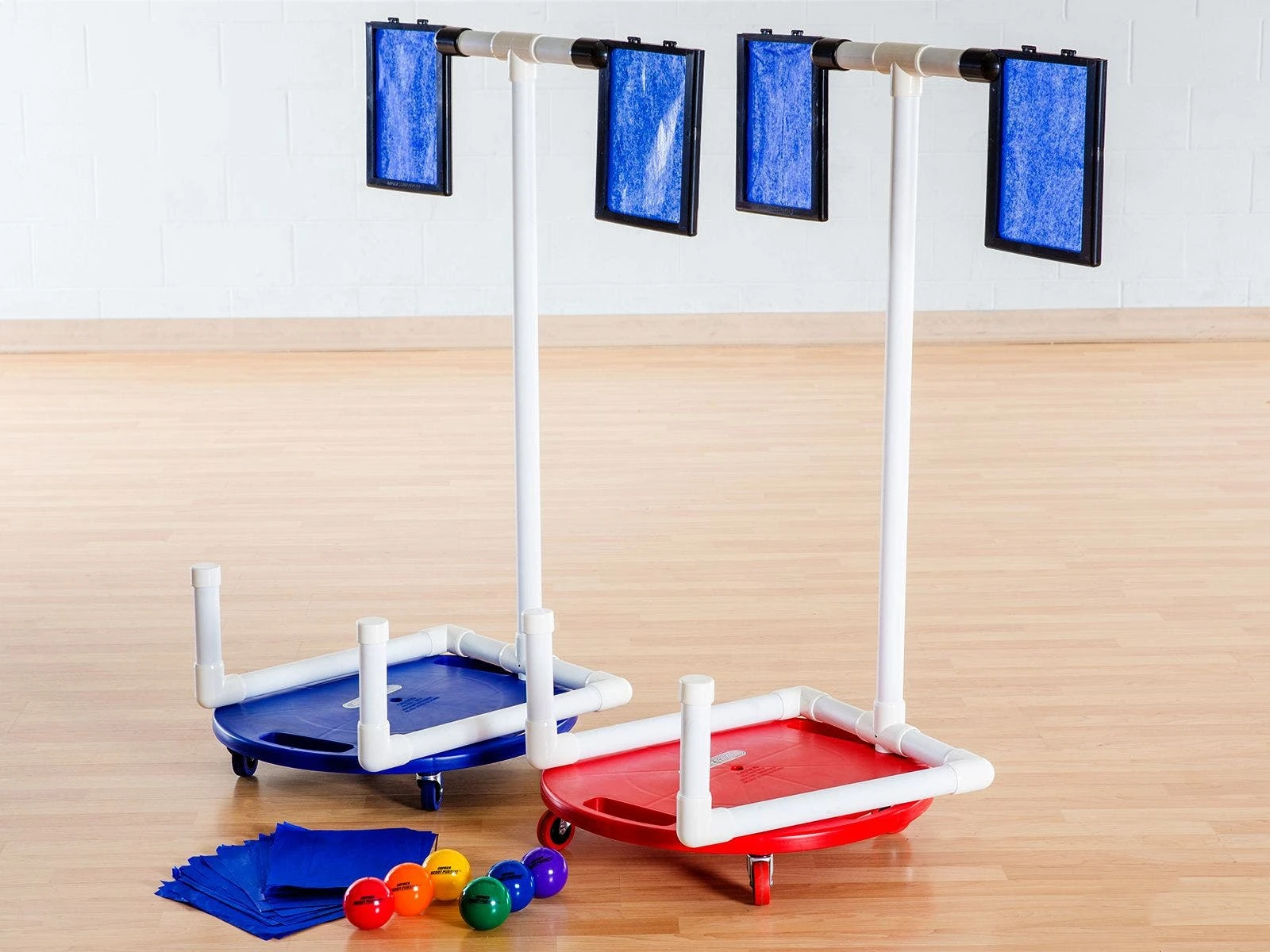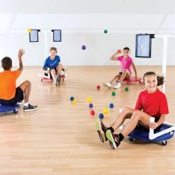 Teams race around the gym, attempting to throw 2-1/2″ dia balls through the tissue paper on the other team’s scooter attachment to score points! Once paper is torn, it’s quick to replace on the attachment, thanks to the snap-together holders. Students will love this fast-paced activity and teachers will love the focus on teamwork and communication, as well as eye-hand coordination.