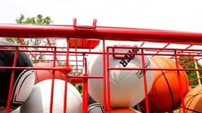 - Stores 36 official basketballs. Measures 47”L x 32”W x 49-1/2”H; 55 lb