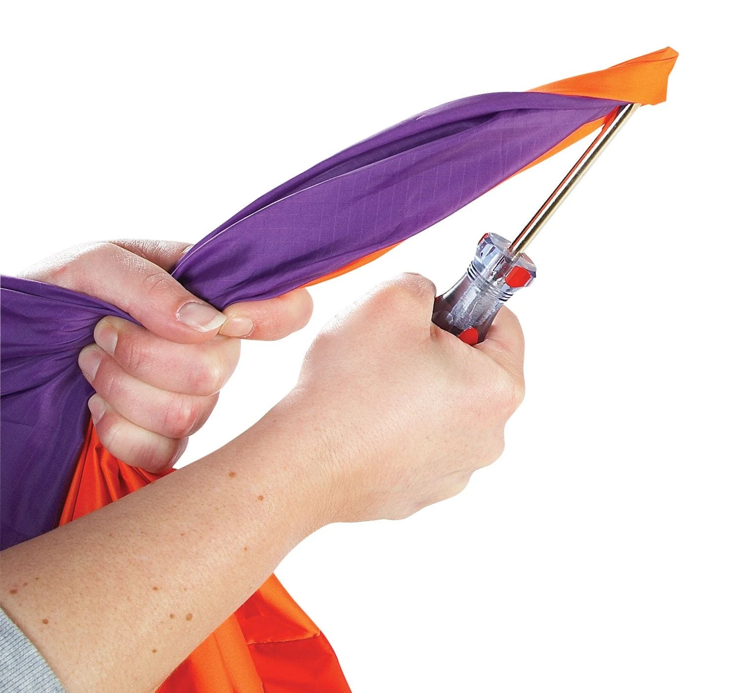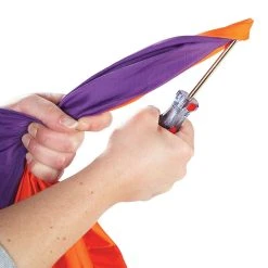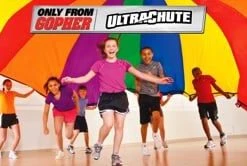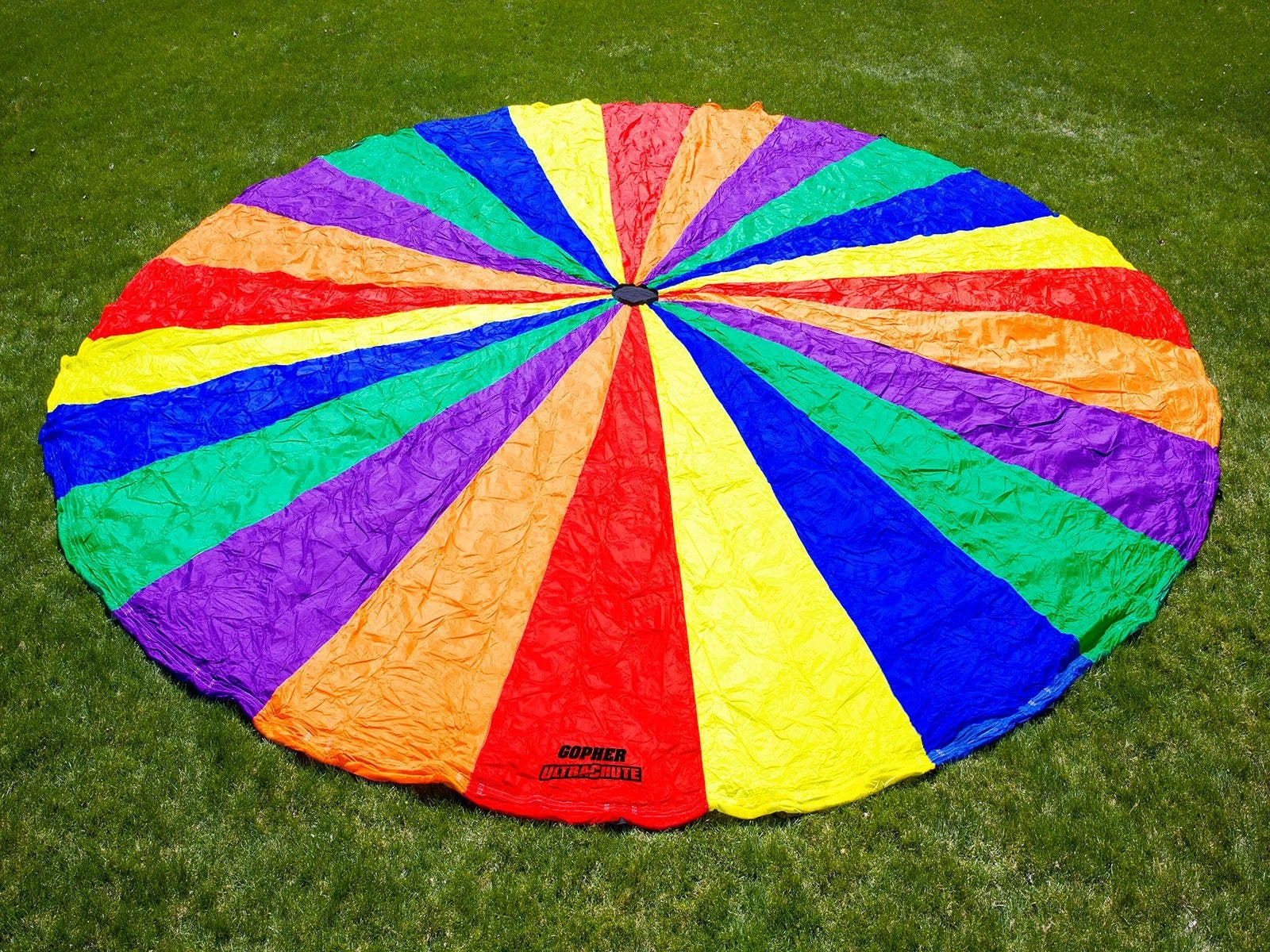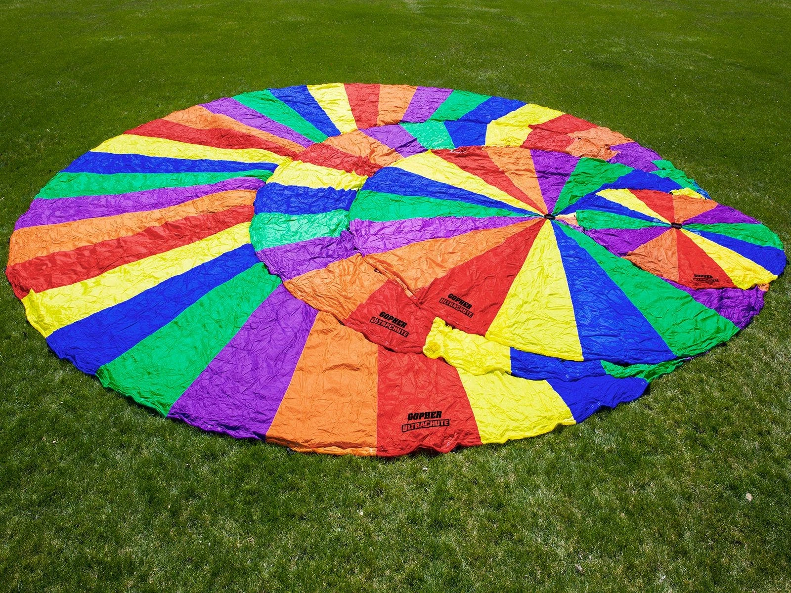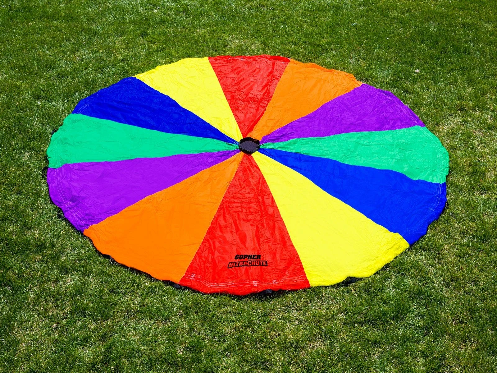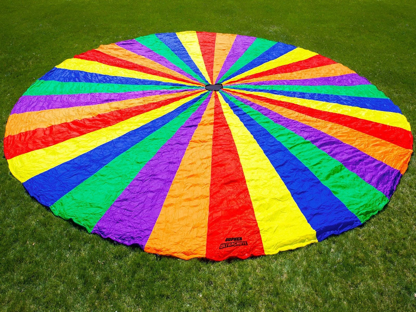 This parachute is the most durable option on the market! The tear-resistant, coated rip-stop polyester features reinforced stitching, creating an incredibly strong parachute for lasting use. An extra mesh layer in the middle prevents balls from falling through and adds to the overall durability.