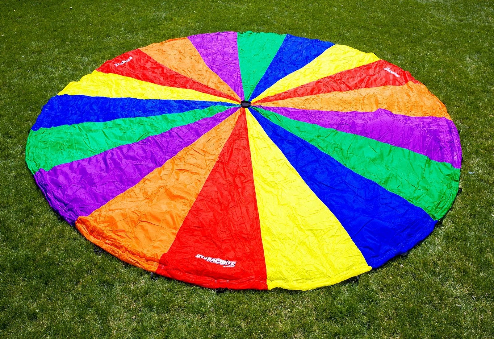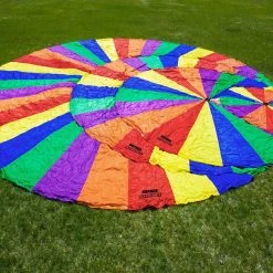 The perimeter of the parachute includes handles so students keep a secure grip. Double stitching resists tearing when activity gets going and ensures handles last for years. Choose from 4 diameter sizes with a varying number of handles to best fit your class size and activity.