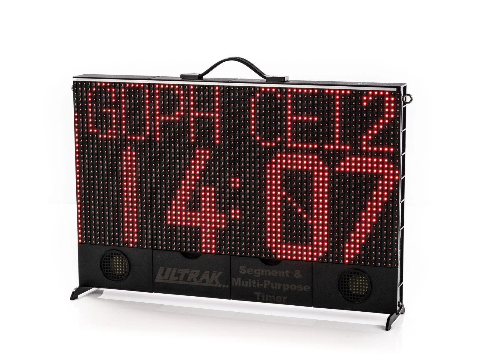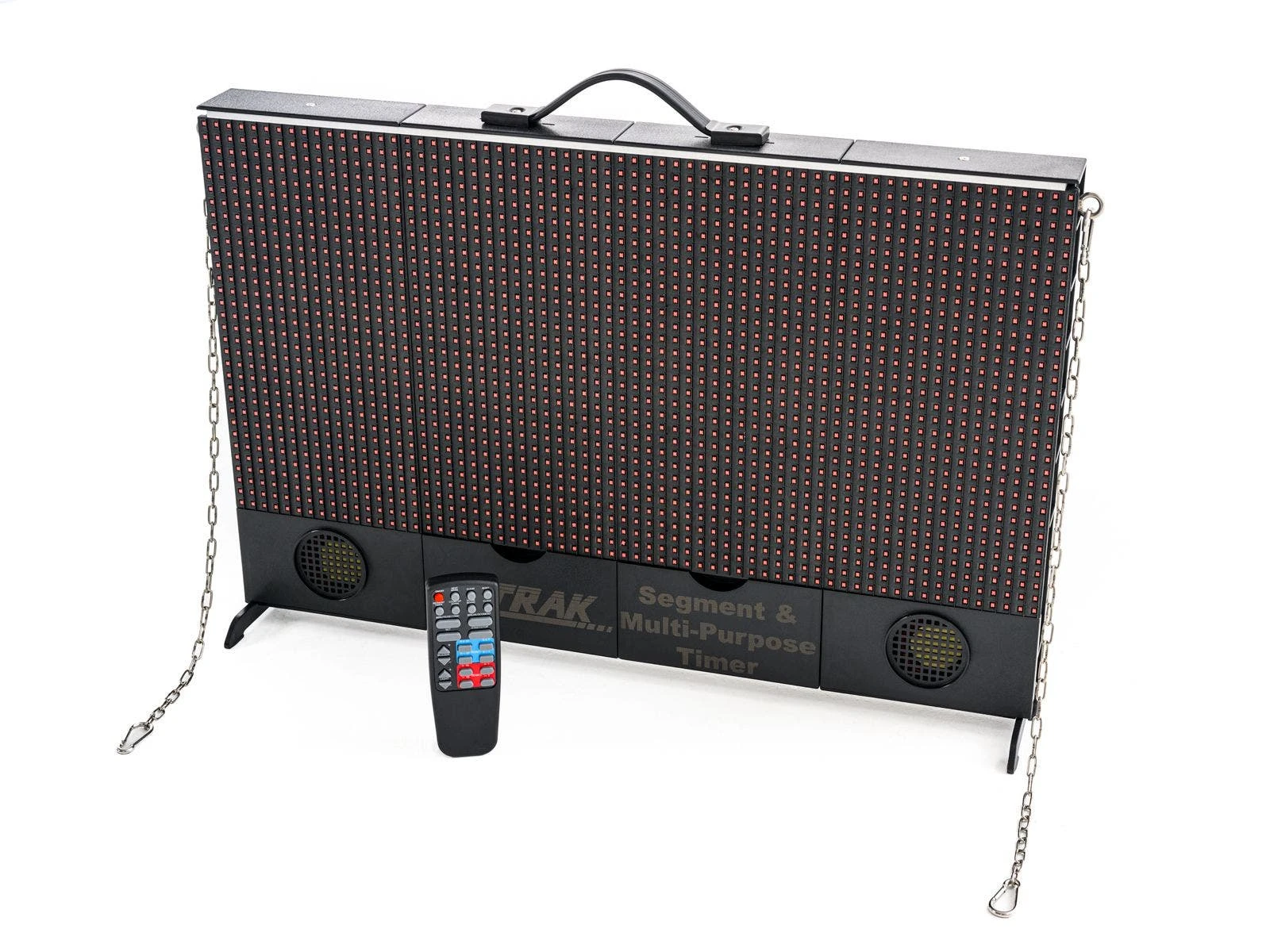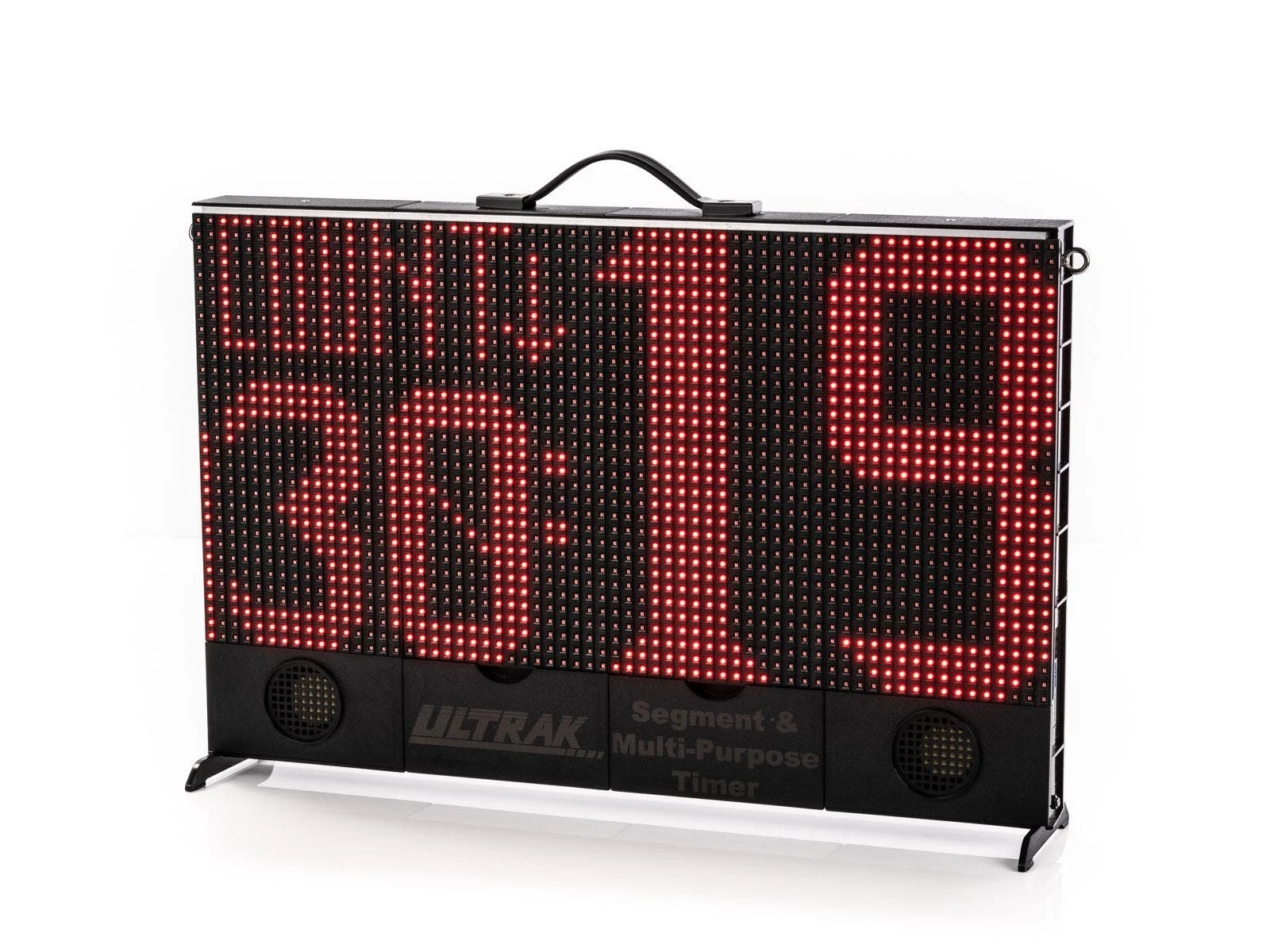 Multipurpose LED timer features 5 modes: segment timer, countdown, count up, scoreboard, and clock. Program and store up to 99 segments in both minutes and seconds between 1 second and 99 minutes, 59 seconds. Bright LED numbers are easy to see from up to 300’ away. Adjust brightness to accommodate lighting in indoor and outdoor locations. The buzzer volume adjusts up to 140 dB and sounds when a segment is complete.