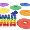 Unique activity set includes over 150 pieces of equipment to engage an entire class in games and activities that develop balance, strength, hand/eye coordination, and many other skills involved in traverse climbing. Equipment is color-coordinated in vibrant Rainbow colors for easy organization and enhanced visual feedback.