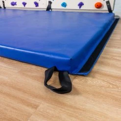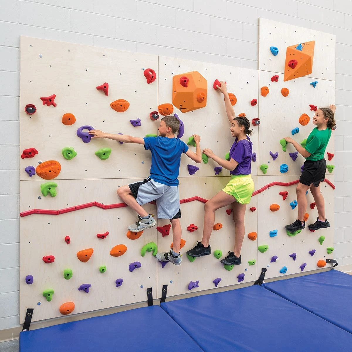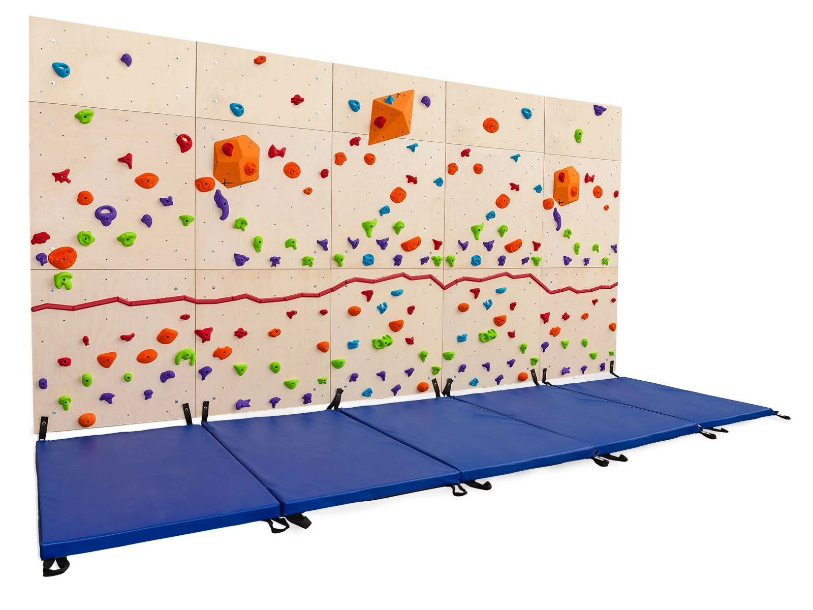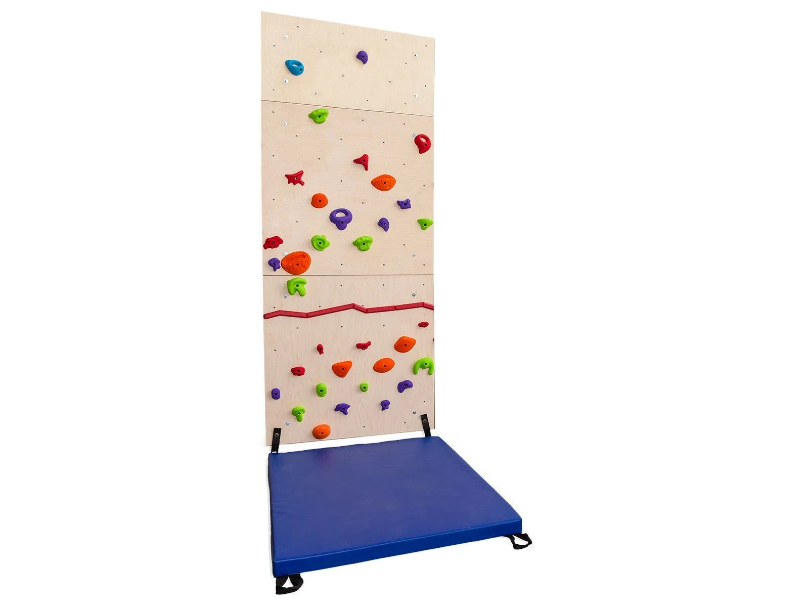 Each 3/4″ thick panel is made of Baltic Birch and has a more modern, natural wood look with a textured clear coat that enhances the beautiful grain in the wood. Each panel includes 66 preset placement options for mounting hand holds, allowing teachers to choose where to place the holds. Walls are anchored into place for supreme stability. Mounting hardware and assembly instructions included. The ULTRAVERSE Cordless Mat Locking System (sold separately) is recommended for every climbing wall installation.