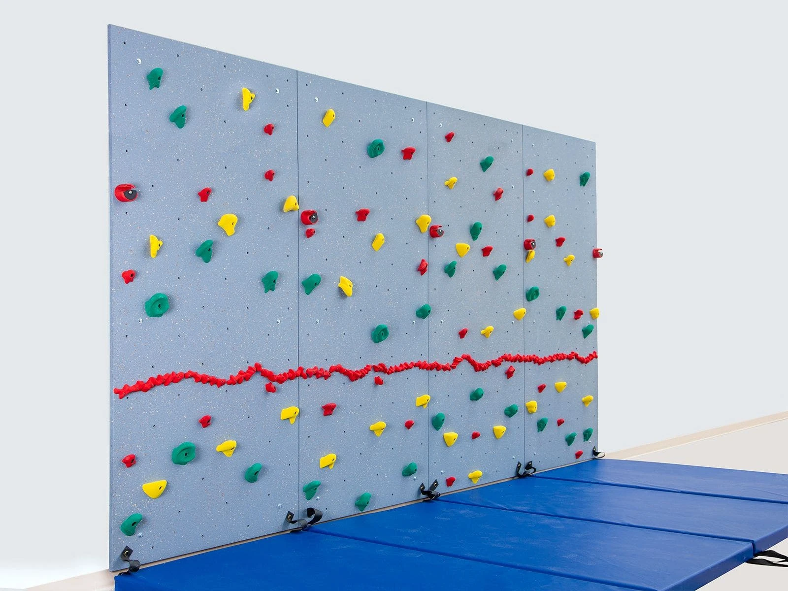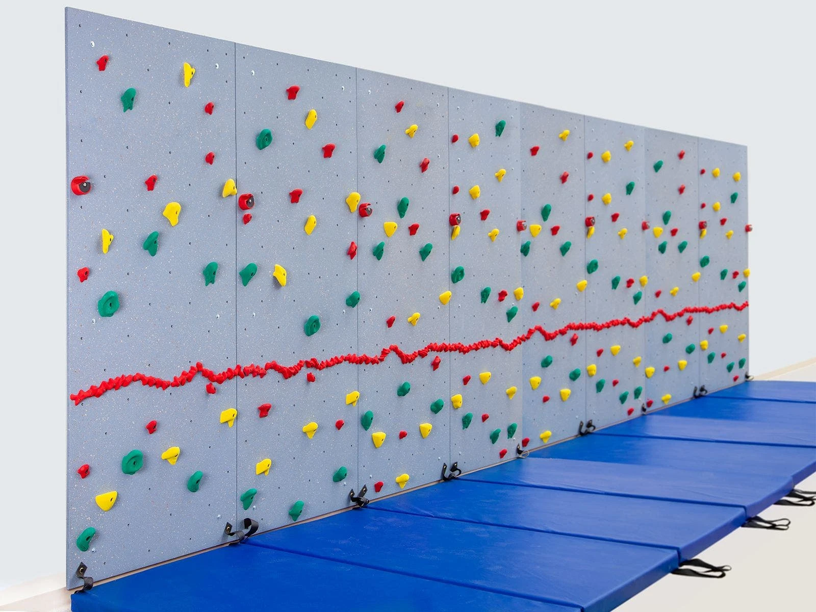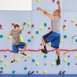 Feature-packed climbing walls have a smooth top edge and a textured surface to give climbers the look and feel of a true rock wall. Durable sand and epoxy coating on the panels adds traction for climbers. A 3D red relief line marks a “safety zone” at the bottom of the wall to clearly show climbers the boundary for safe placement of feet. Because traverse climbing is a safer type of climbing challenge that doesn’t require ropes or harnesses, students will be free to move at a pace that’s right for them. Teachers can easily rearrange holds and lock them into place with an included hex wrench.