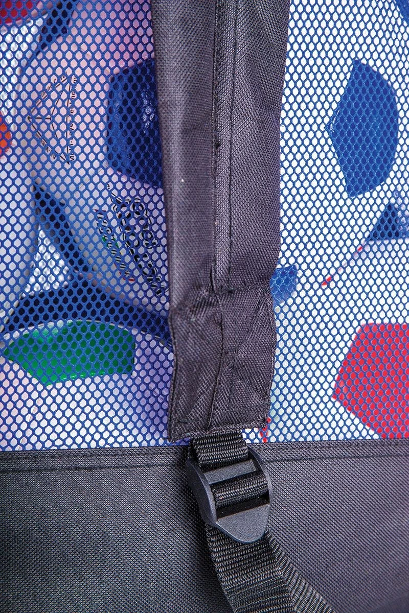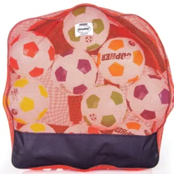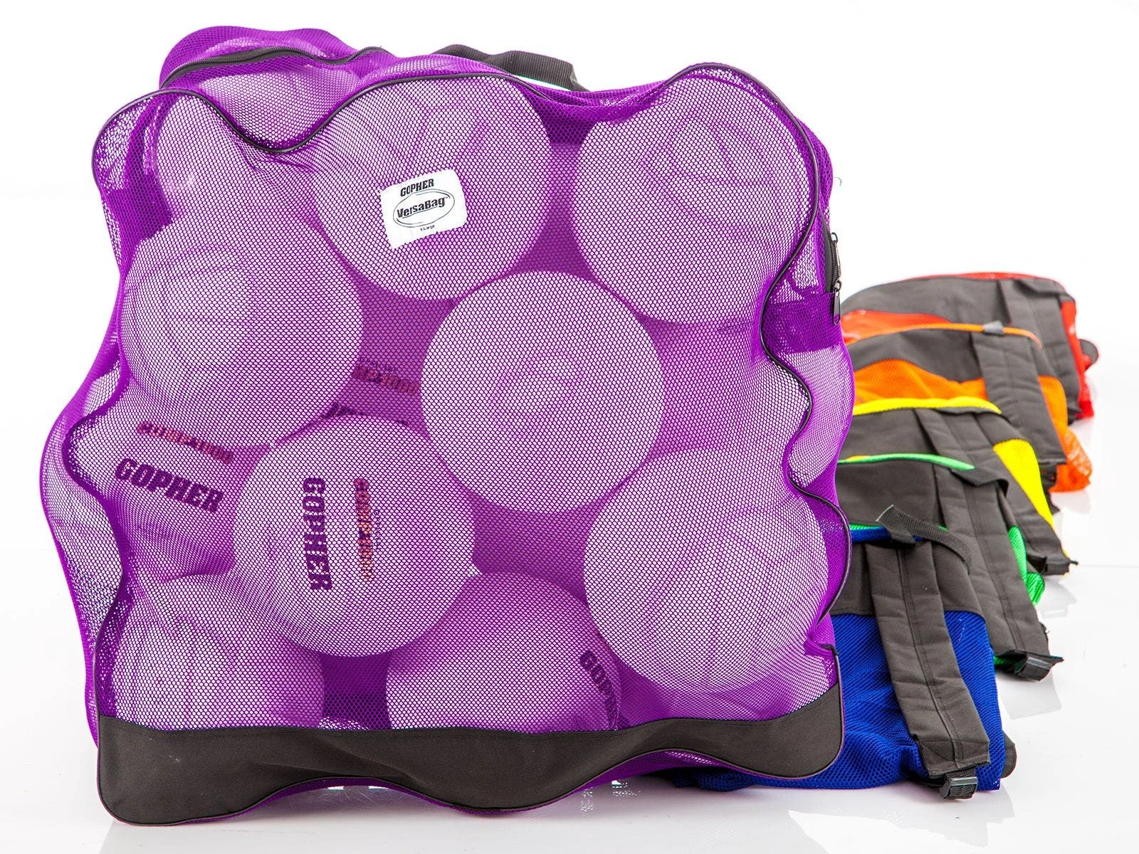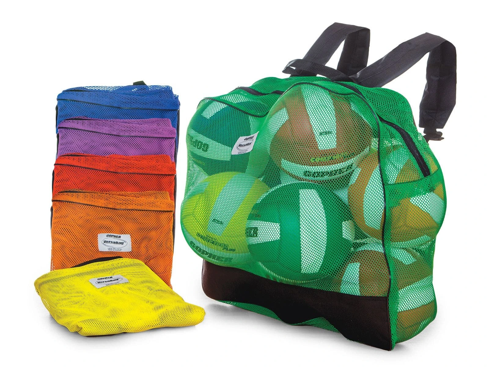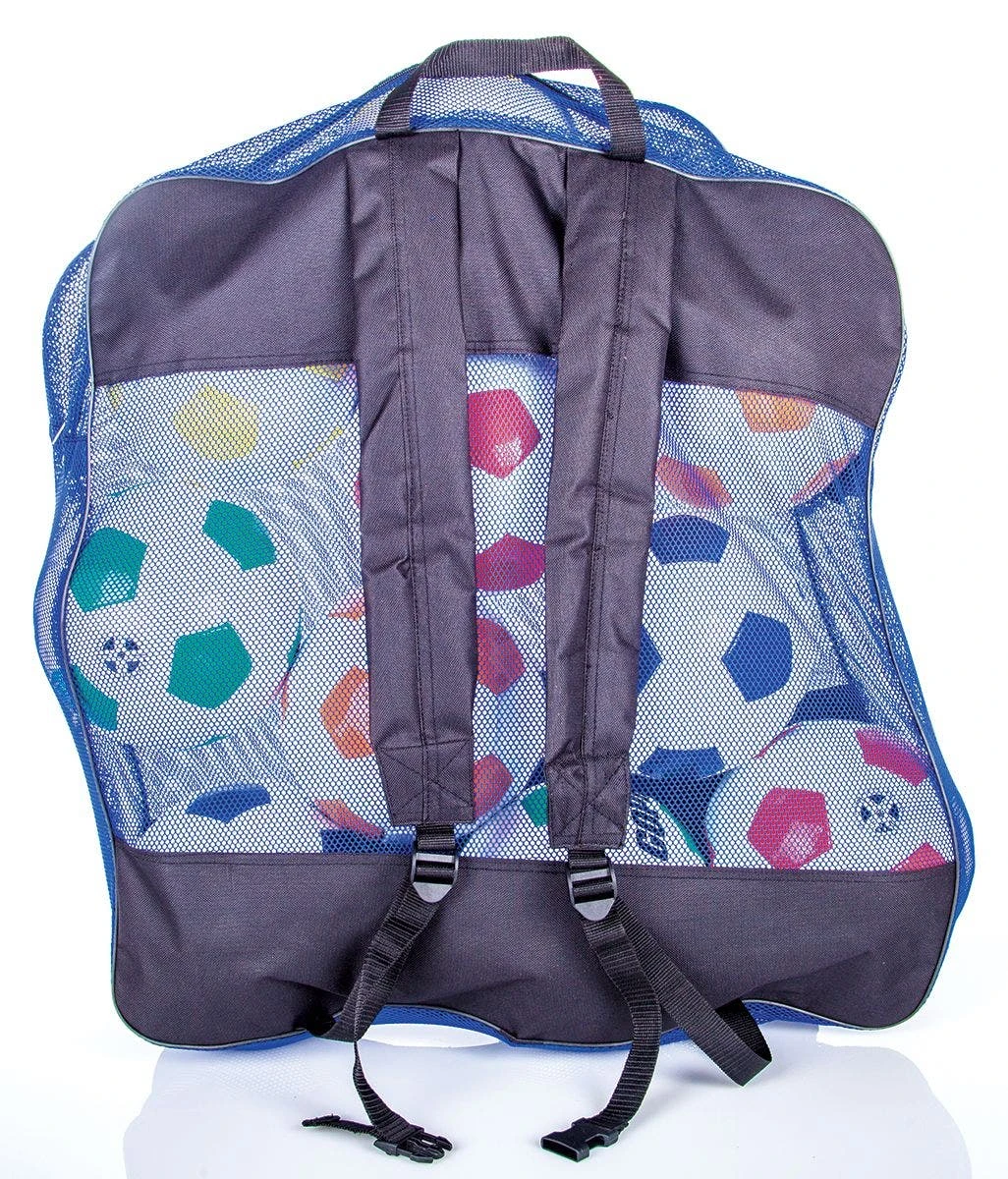 Sling these large mesh storage bags over your shoulder for a hands-free approach to toting balls to and from your activity area. Two padded shoulder straps can be quickly adjusted to distribute weight evenly and a third strap at the top can be used to quickly pick up the bag if the trip is short. Mesh construction makes it easy to identify the contents while keeping the entire pack lightweight. An open-weave design allows you to see what’s inside and creates airflow to mitigate moisture and mildew. Use indoors or out, even when it’s wet. Rainbow colors allow for easy organization.