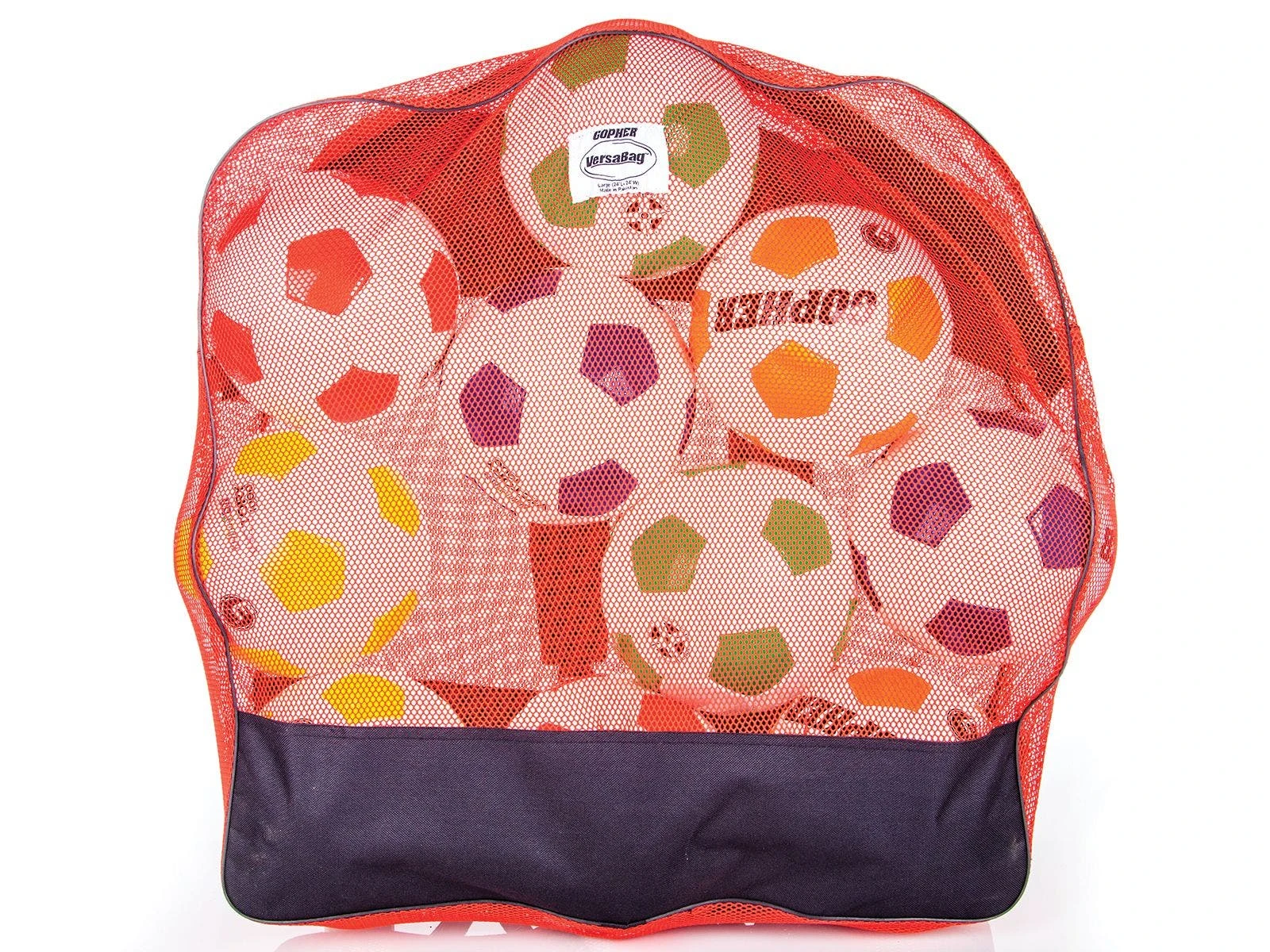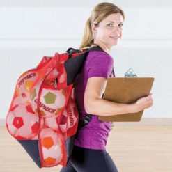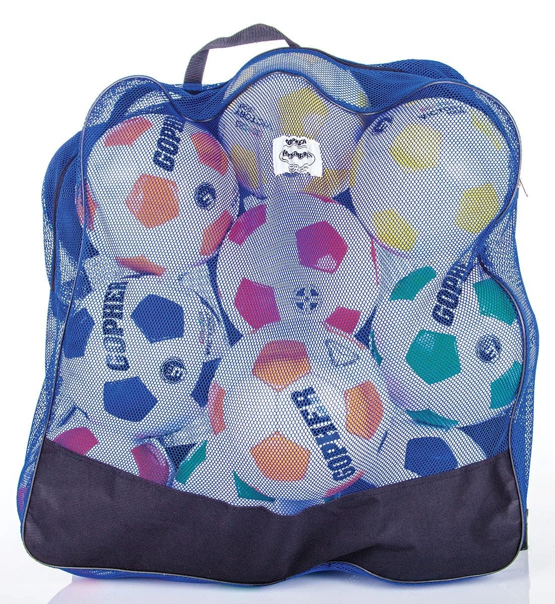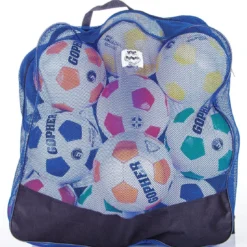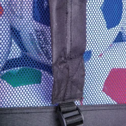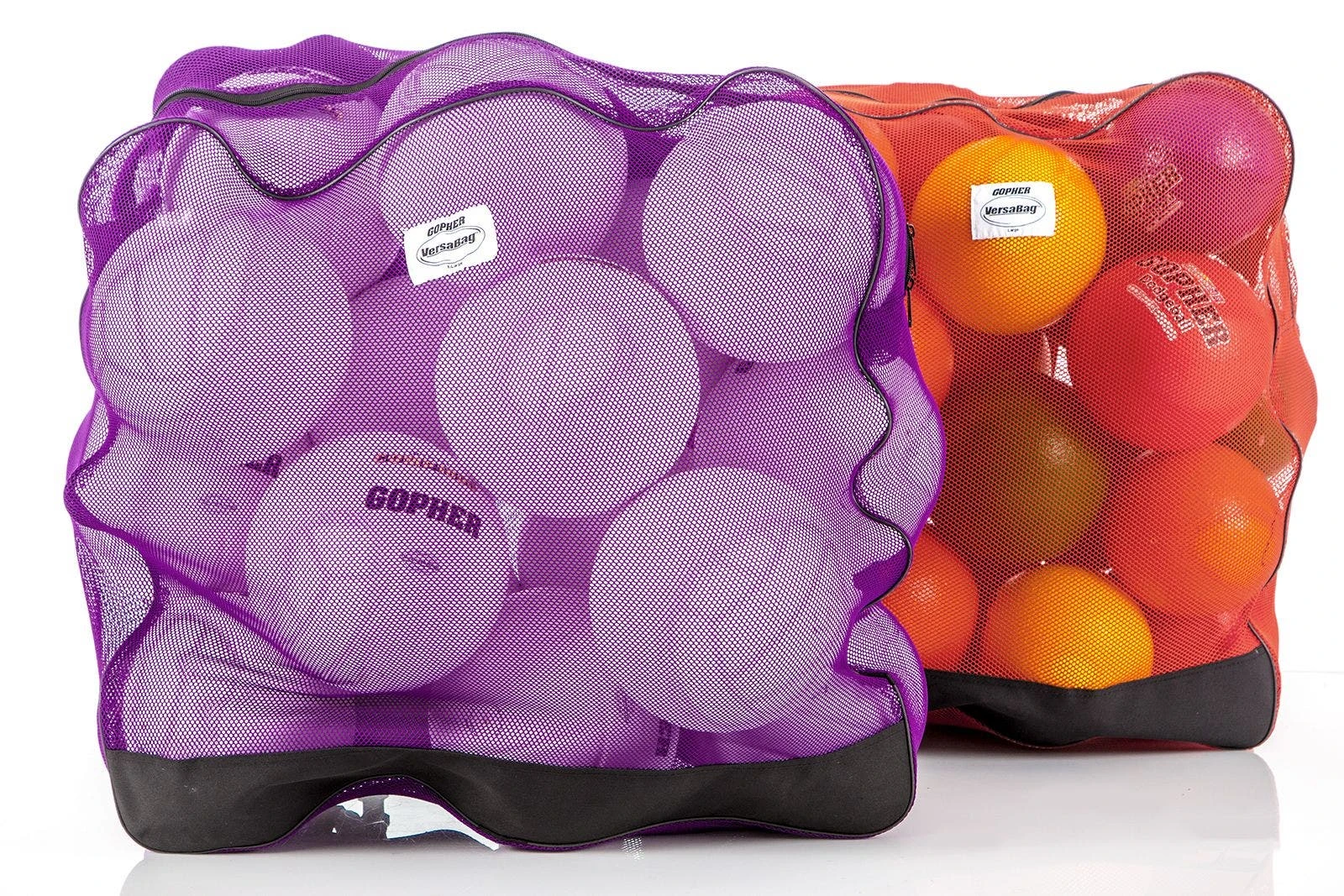 Sling these large mesh storage bags over your shoulder for a hands-free approach to toting balls to and from your activity area. Two padded shoulder straps can be quickly adjusted to distribute weight evenly and a third strap at the top can be used to quickly pick up the bag if the trip is short. Mesh construction makes it easy to identify the contents while keeping the entire pack lightweight. An open-weave design allows you to see what’s inside and creates airflow to mitigate moisture and mildew. Use indoors or out, even when it’s wet. Rainbow colors allow for easy organization.