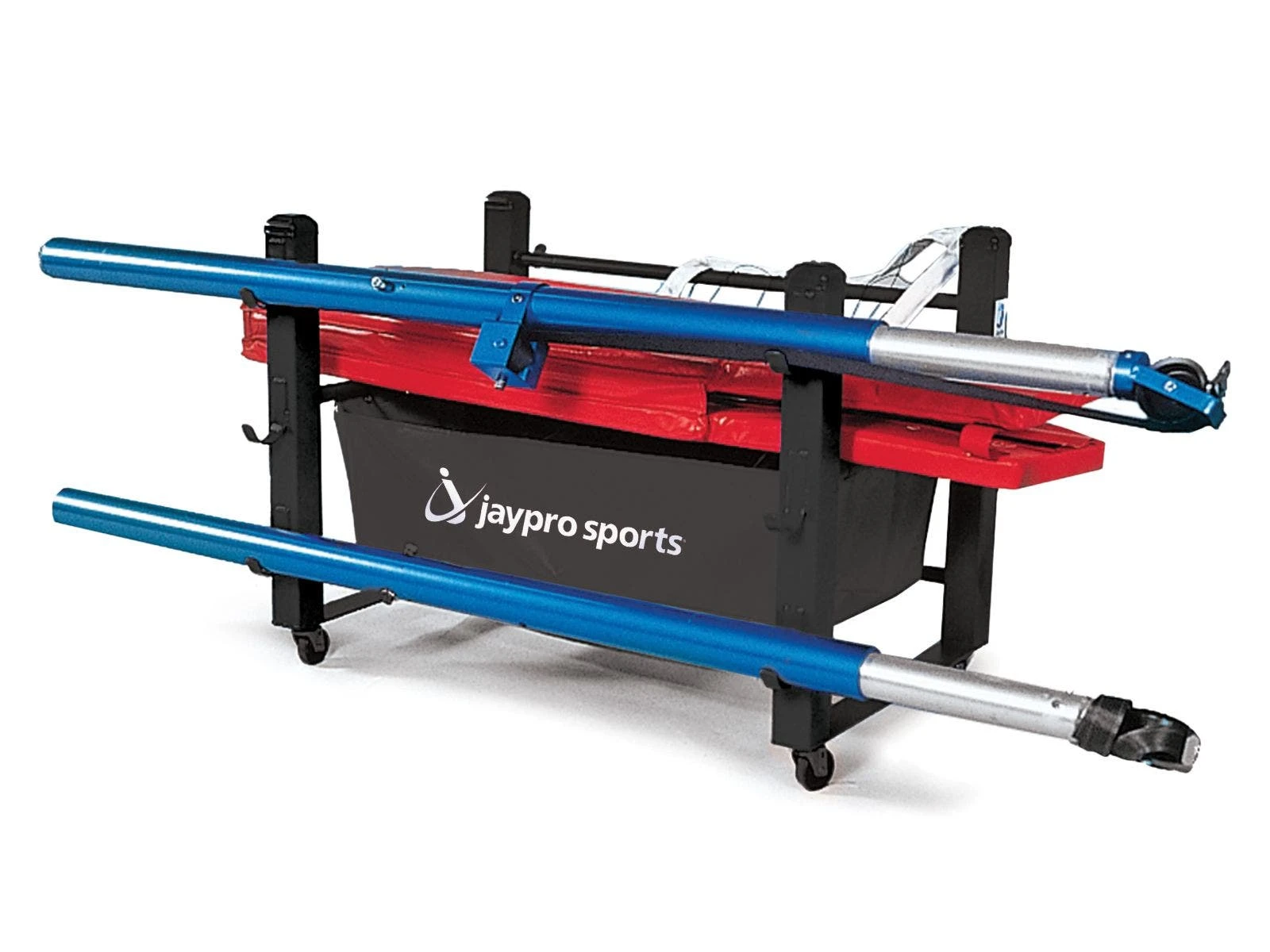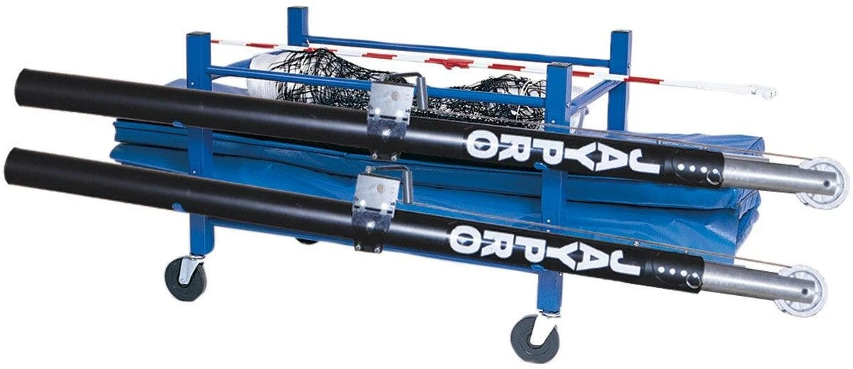 Looking for an easy way to transport volleyball standards? These carriers feature welded-steel frames that hold up to 6 sleeve-type end standards, 3 nets, 3 pairs of pads, antennas, and a dozen volleyballs.